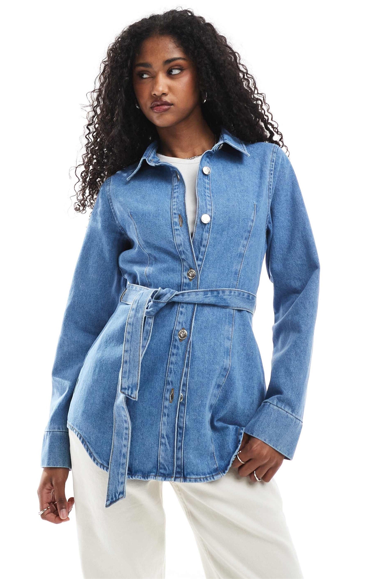 Джинсовая куртка с затянутой талией и ремнем