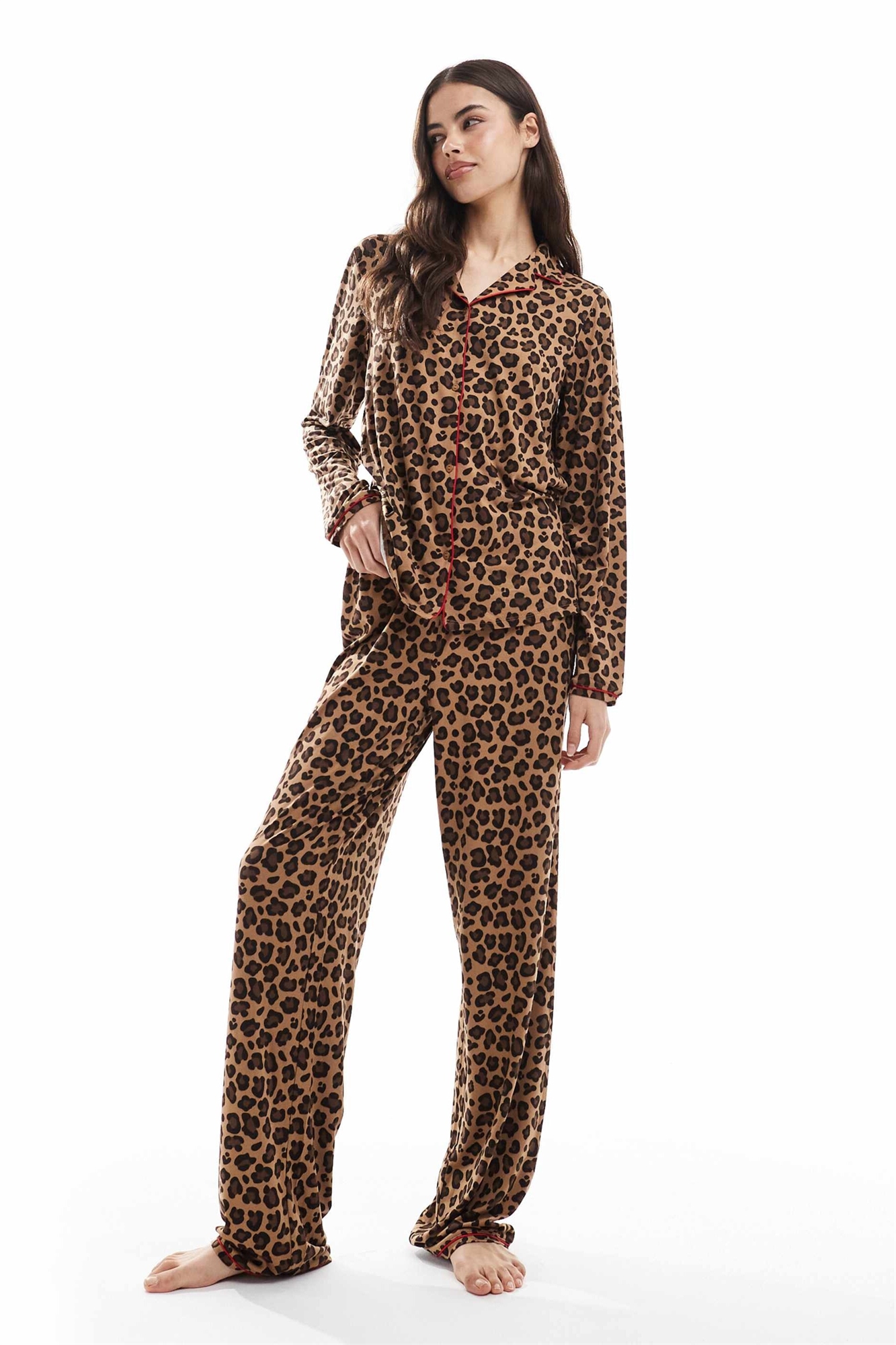 Комплект пижамы с высоким воротником и длинными рукавами и брюками