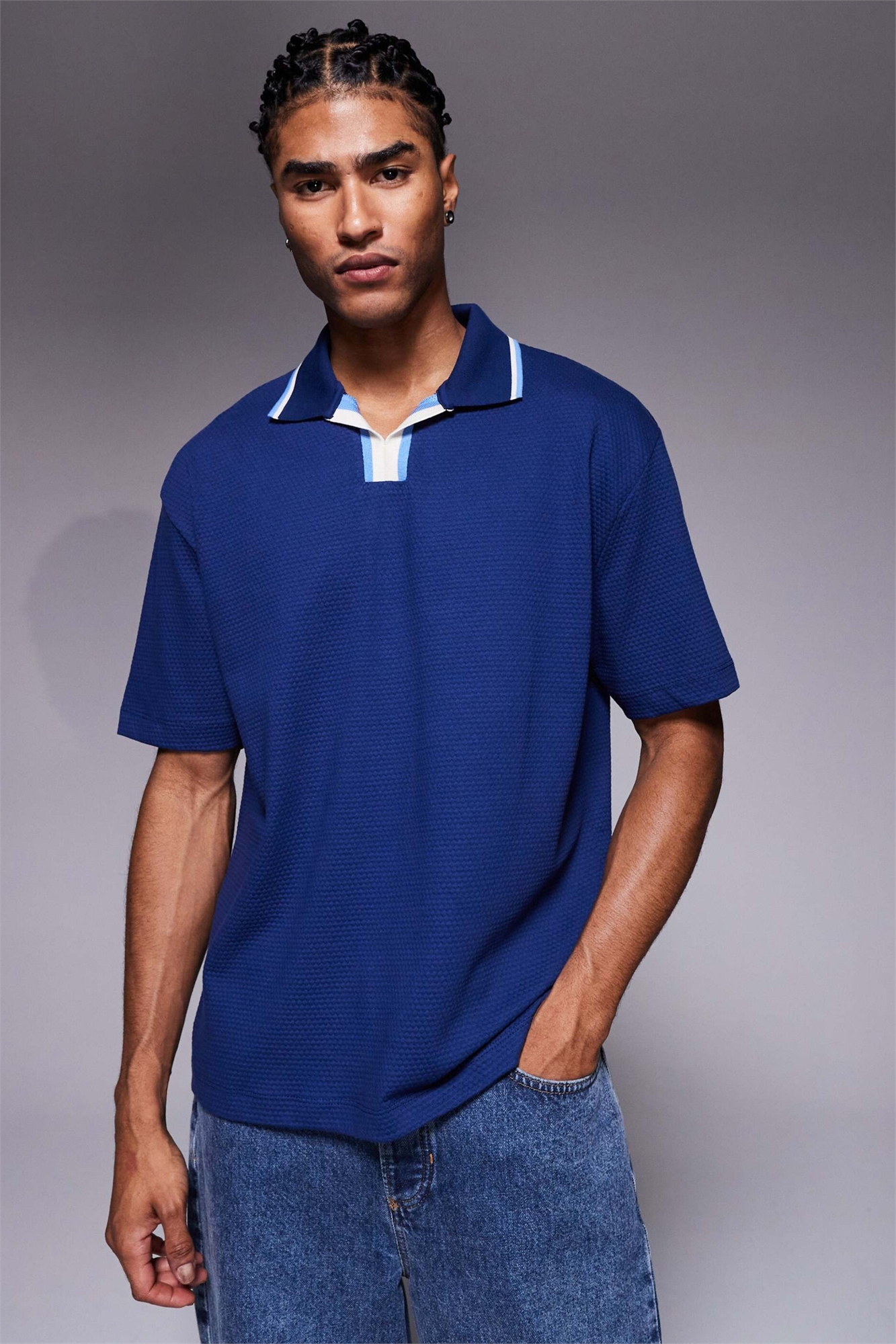 Полурубашка свободного кроя с фактурной текстурой и контрастным воротником