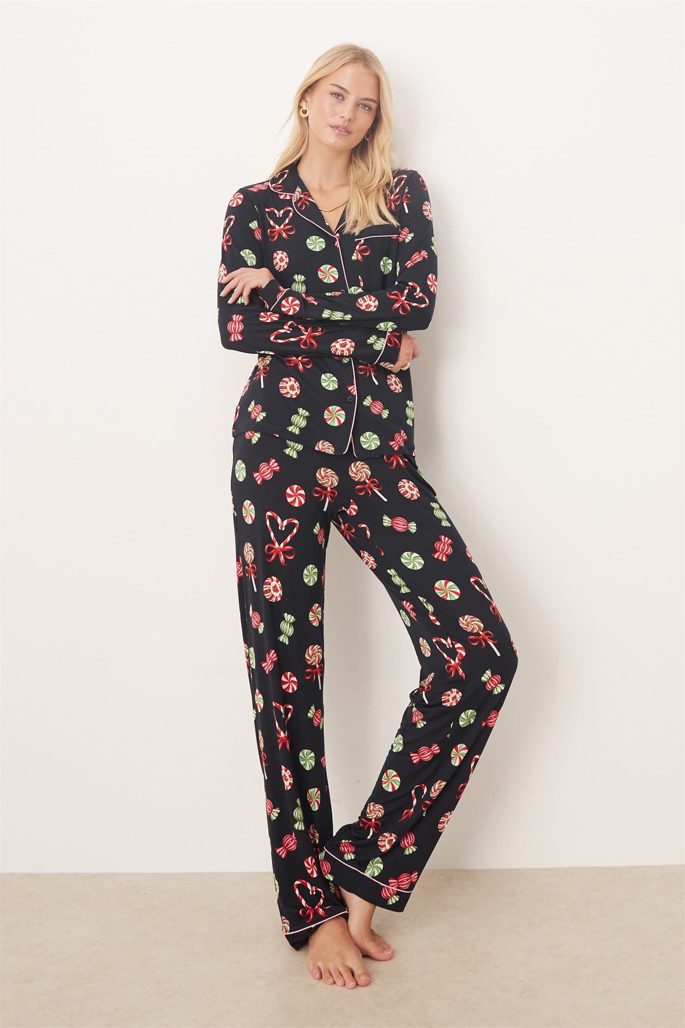 Пижамный комплект «Poly» с длинными рукавами и отложным воротником