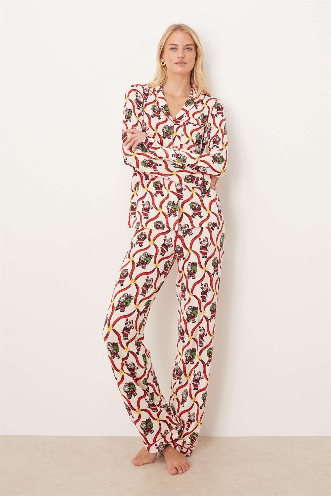 Эксклюзивный комплект пижамы Chelsea Peers из полиэстера, длинный, с длинными рукавами и отложным воротником