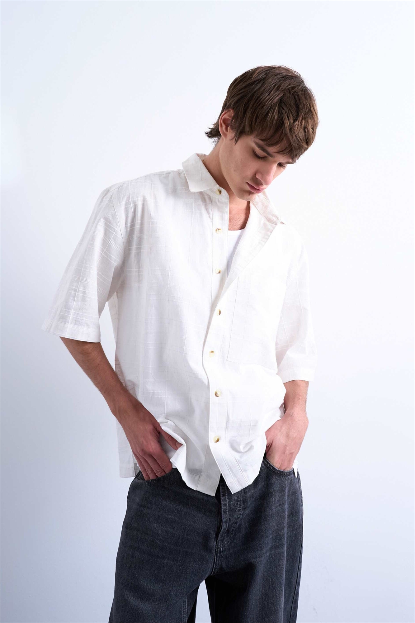 Рубашка с короткими рукавами, прямого кроя и фактурной текстурой