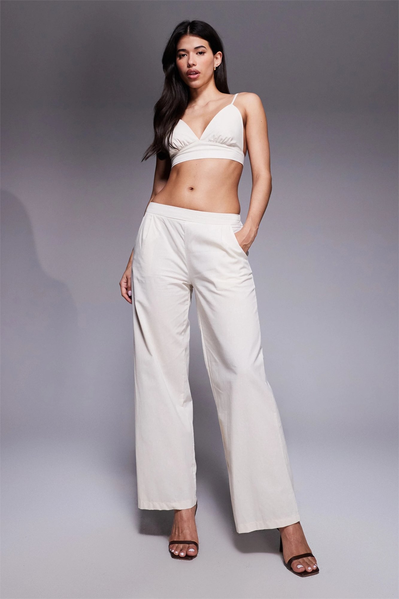 Брюки с широкими брючинами и эластичным поясом, имитирующие льняную ткань co-ord