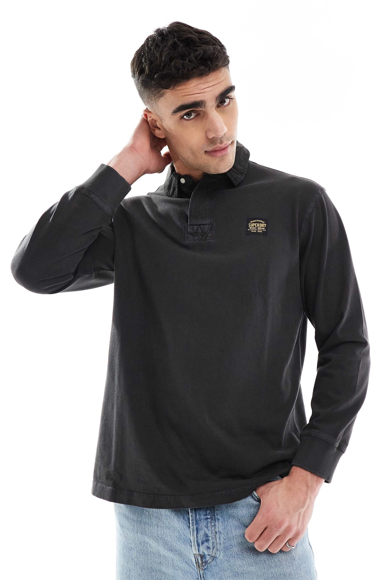 Рубашка в стиле регби с длинными рукавами и контрастной отстрочкой