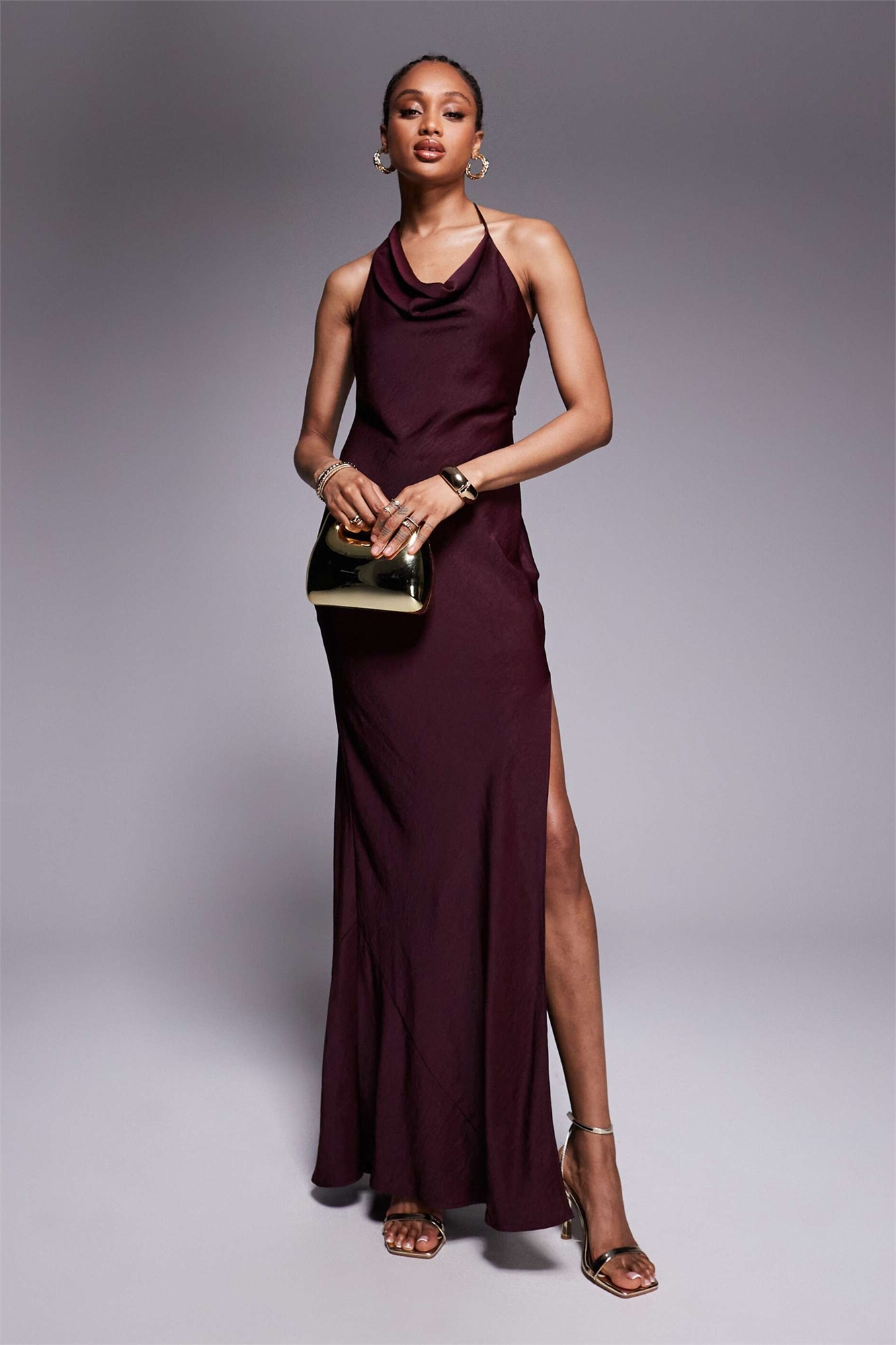 ASOS DESIGN: Платье средней длины из атласа с асимметричными бретелями и разрезом