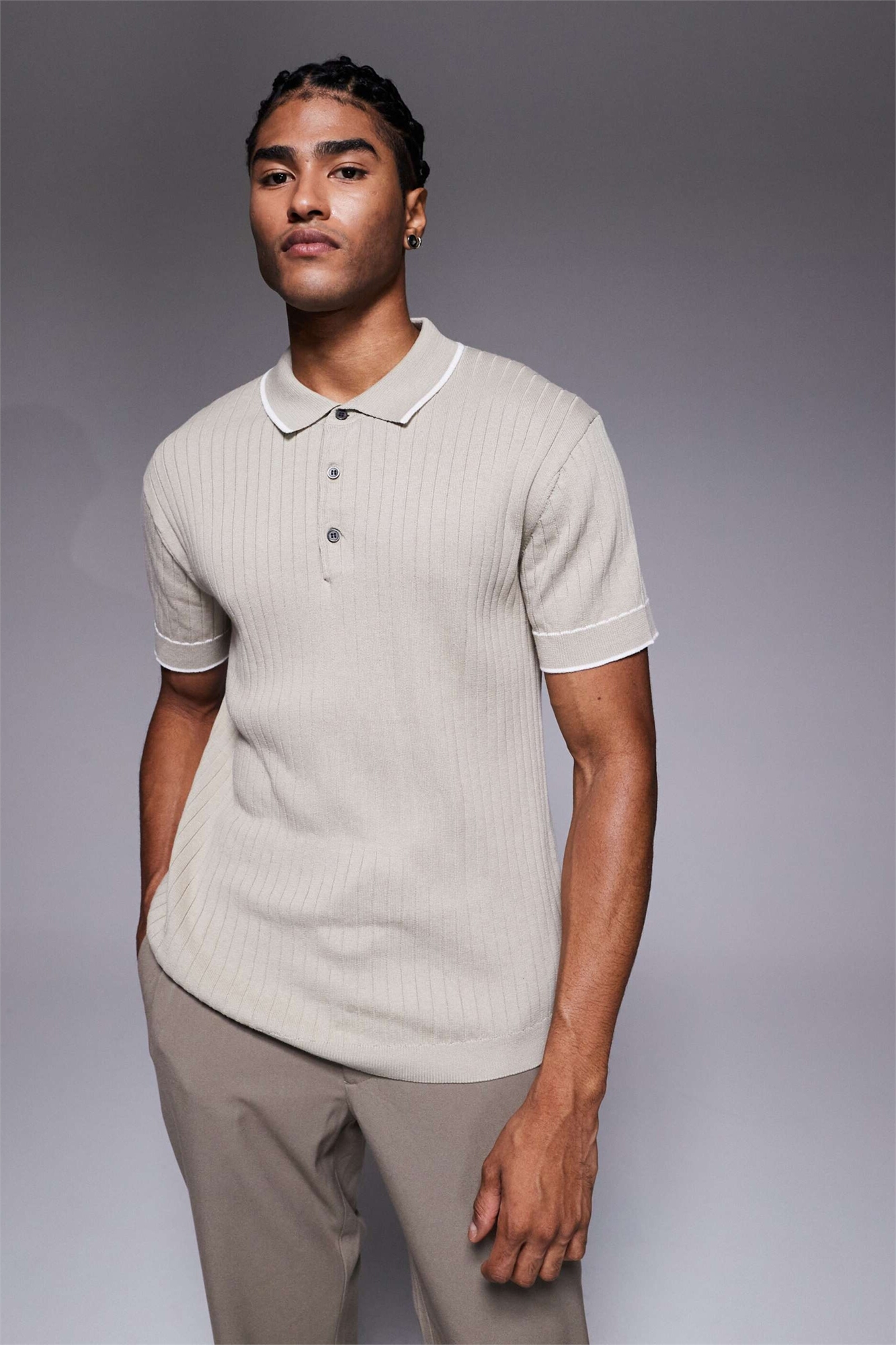 Поло с ребристым воротником и облегающим кроем