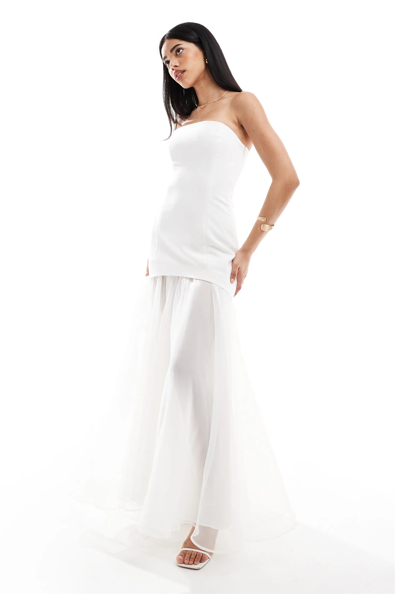 Свадебное макси-платье из шифона без бретелек