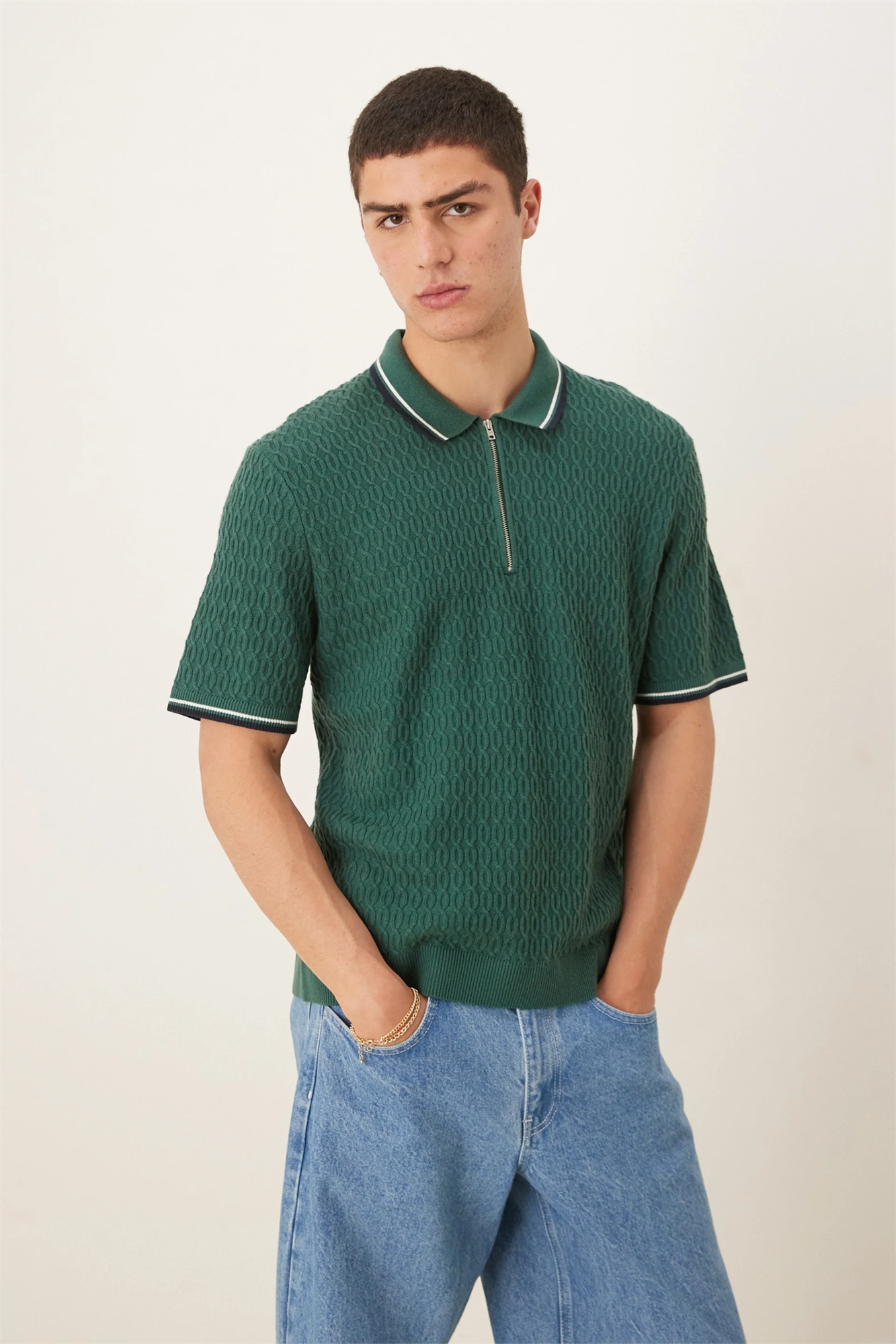Трикотажная рубашка-поло с полузастежкой-молнией и контрастной окантовкой