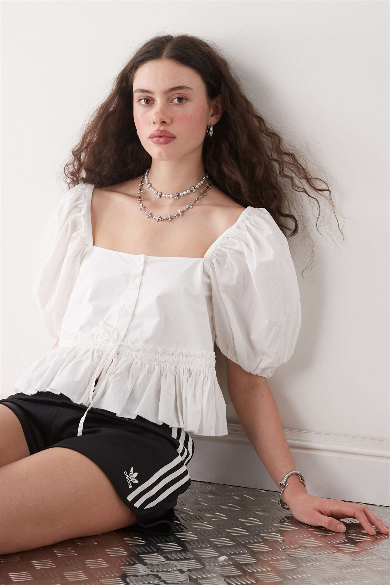 Блузка с пеплумом в стиле «доярки» и рукавами-буф