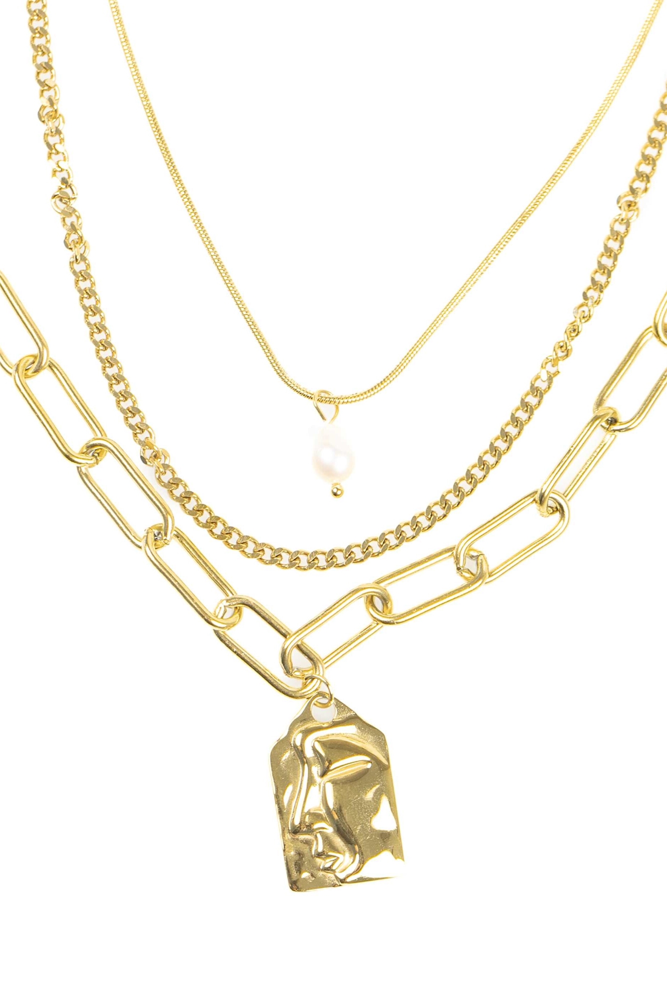 Яркое многоярусное колье с подвеской в виде жемчужины из нержавеющей стали с золотым покрытием