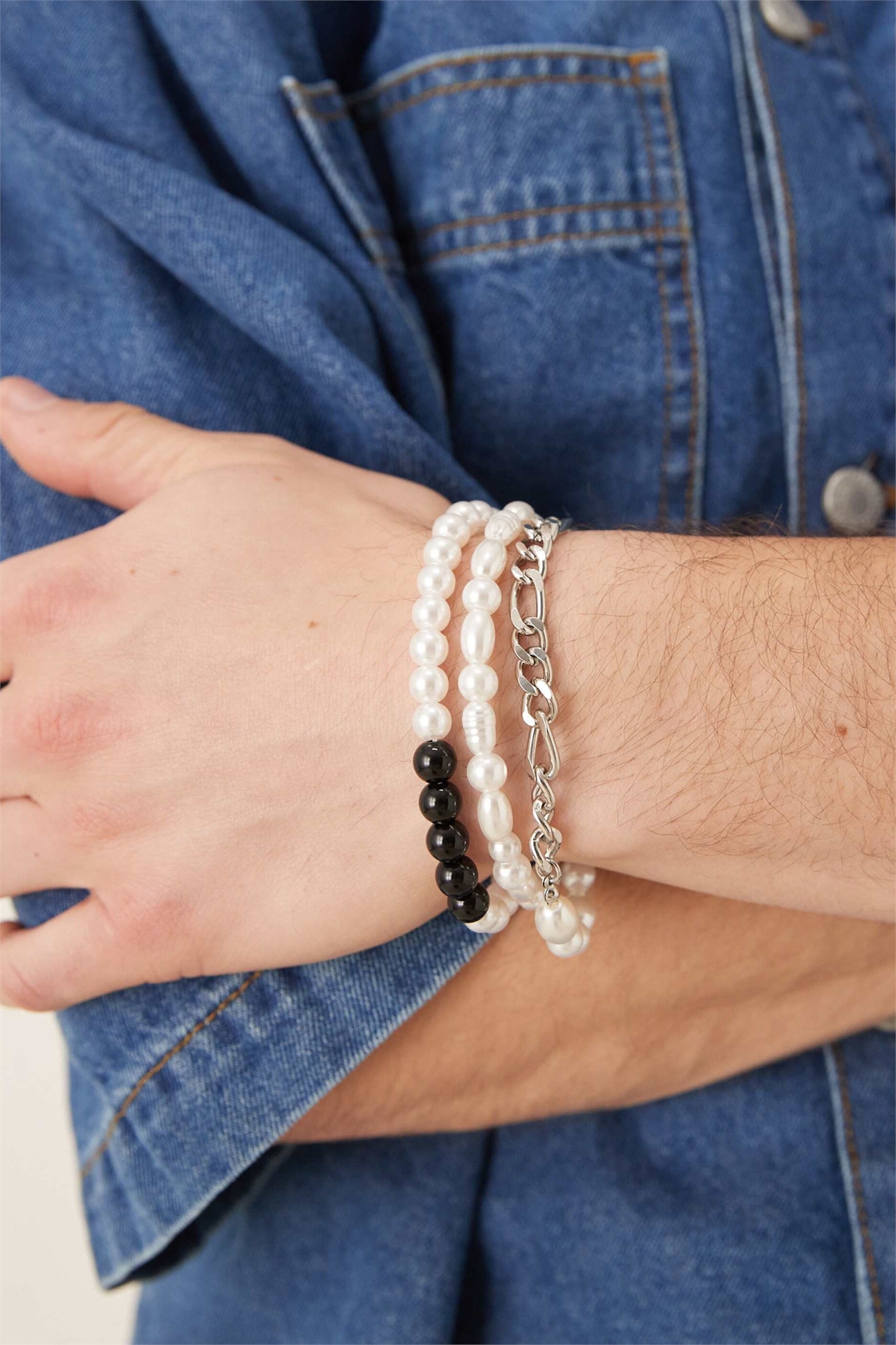 Набор из 3 браслетов с комбинированной цепочкой и бусинами