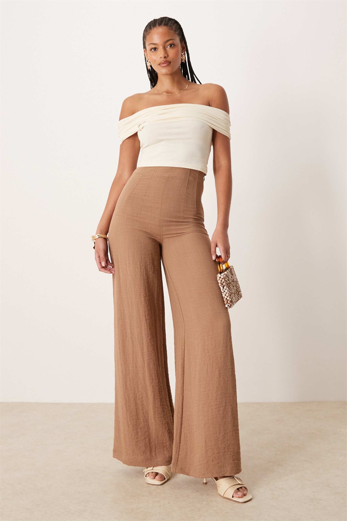 ASOS DESIGN — брюки с высокой талией и корсетной линией из смешанного льна с эффектом гофрирования для высоких