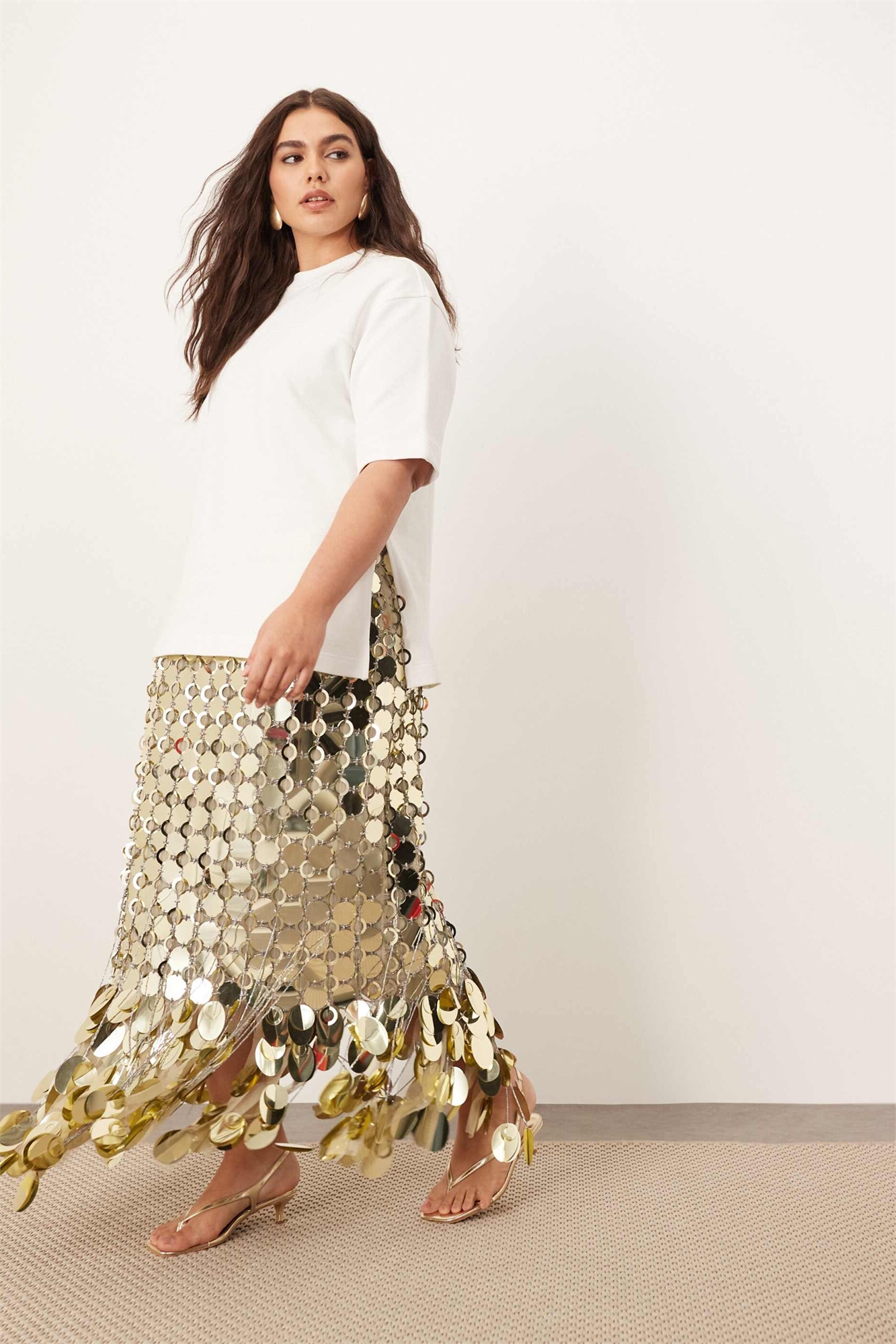 Юбка средней длины с бахромой по низу, украшенная пайетками в стиле «Curve Futurist»