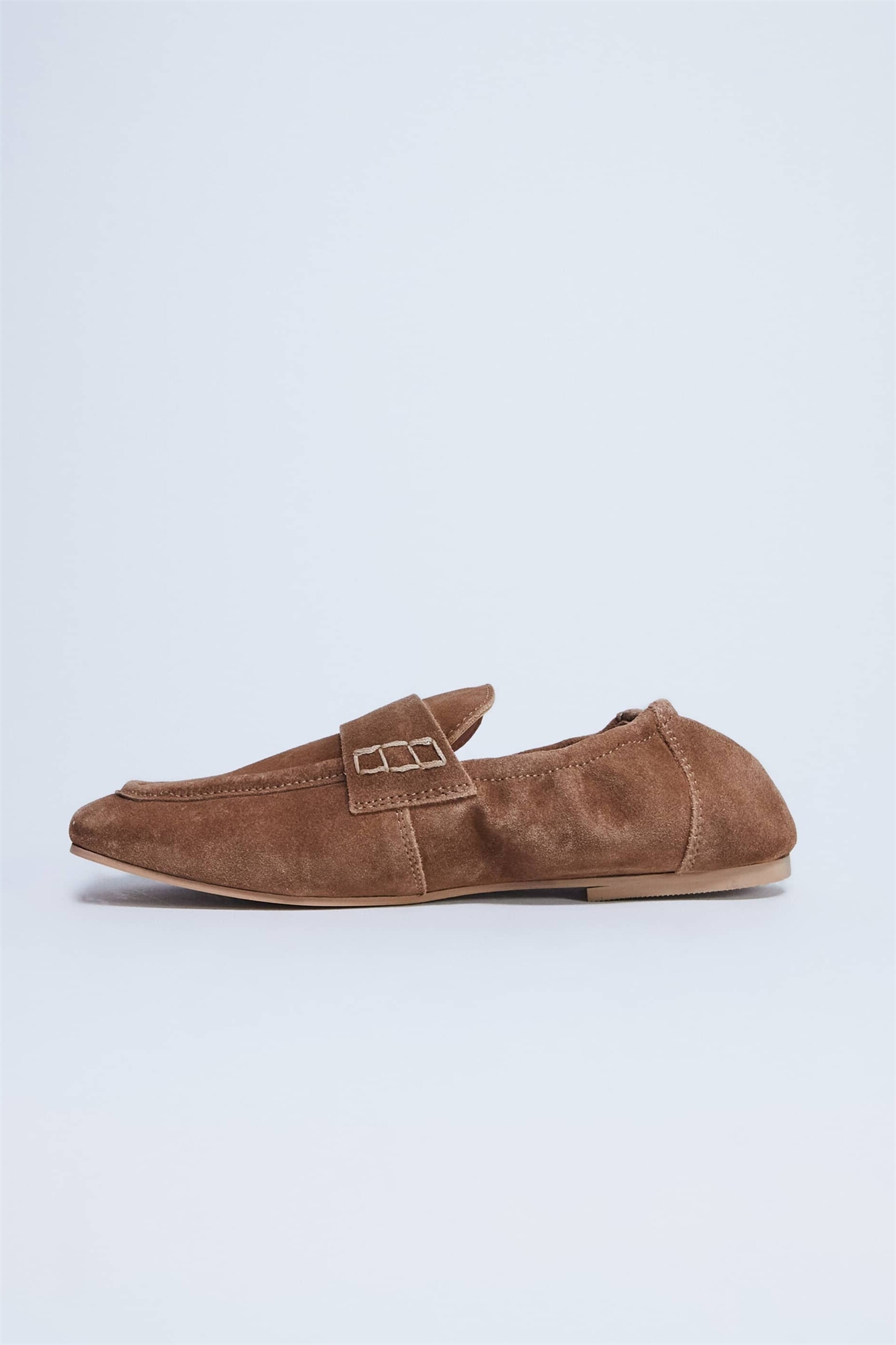 Лоферы Brooks с рюшами на заднике из натуральной замши