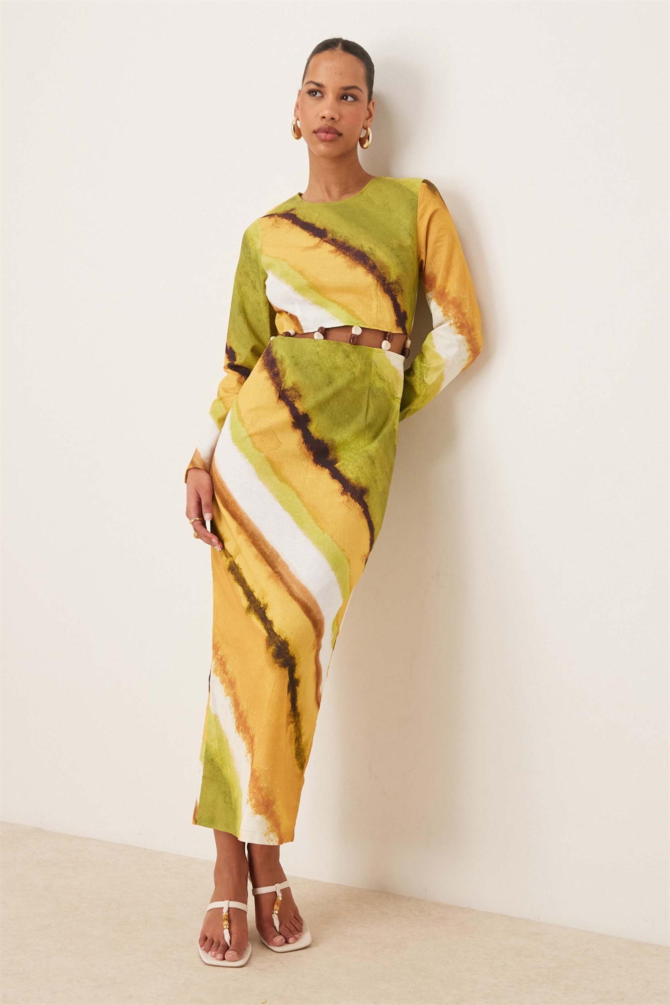 Платье средней длины с вырезом на талии