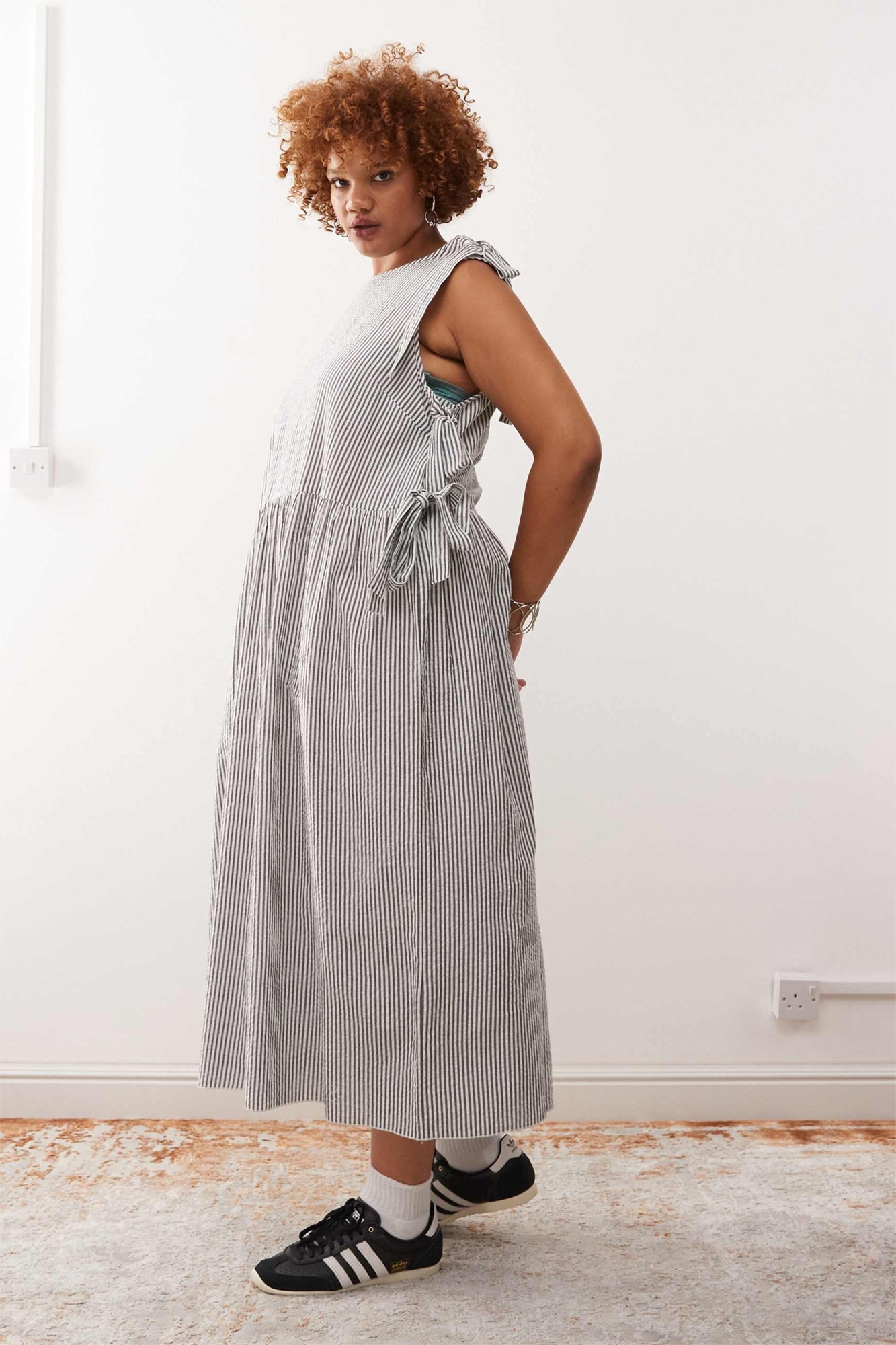 Платье средней длины с завязками на талии