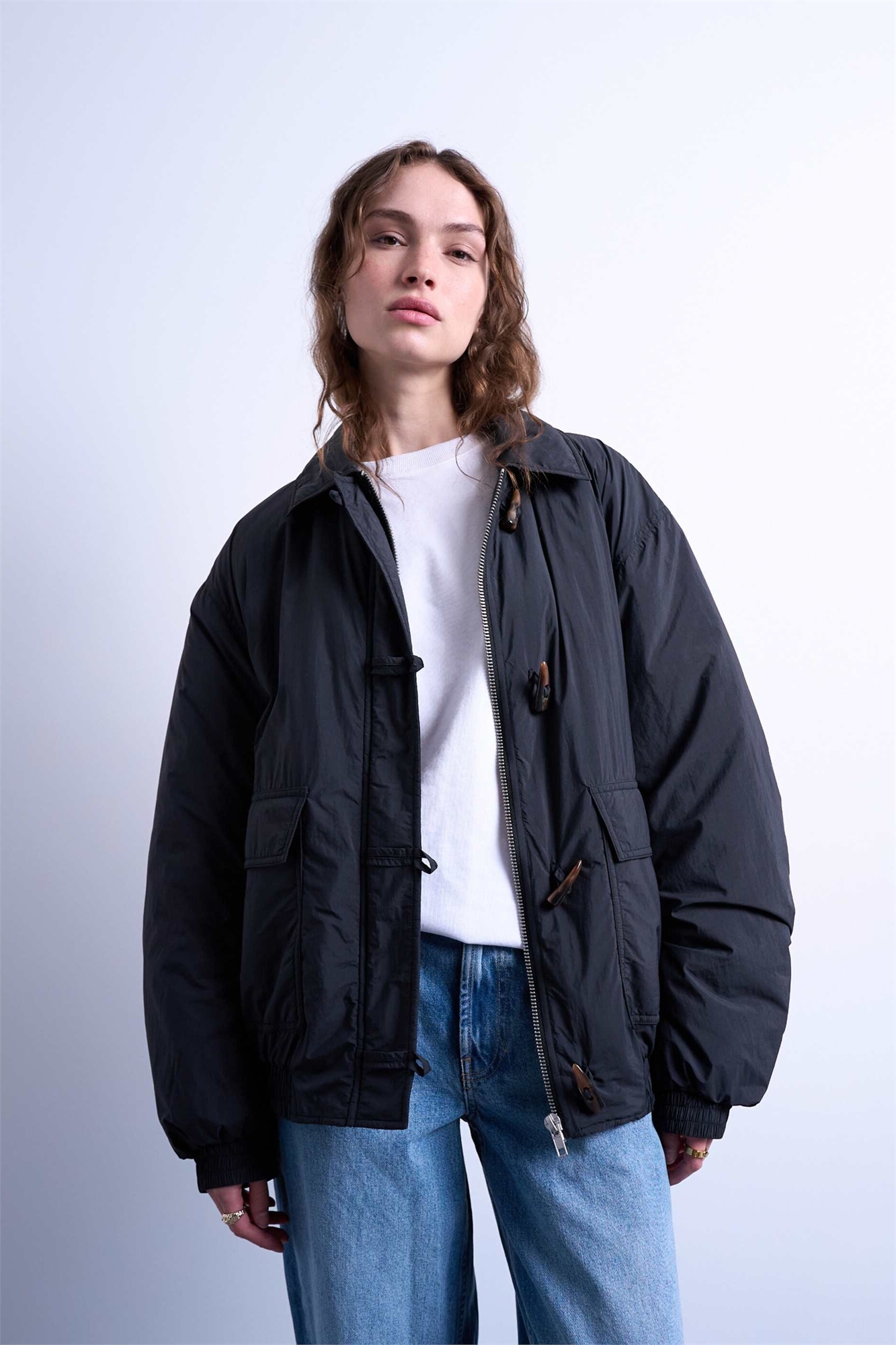 Большой бомбер гибридного кроя с утепленной подкладкой и застежкой-тоггл