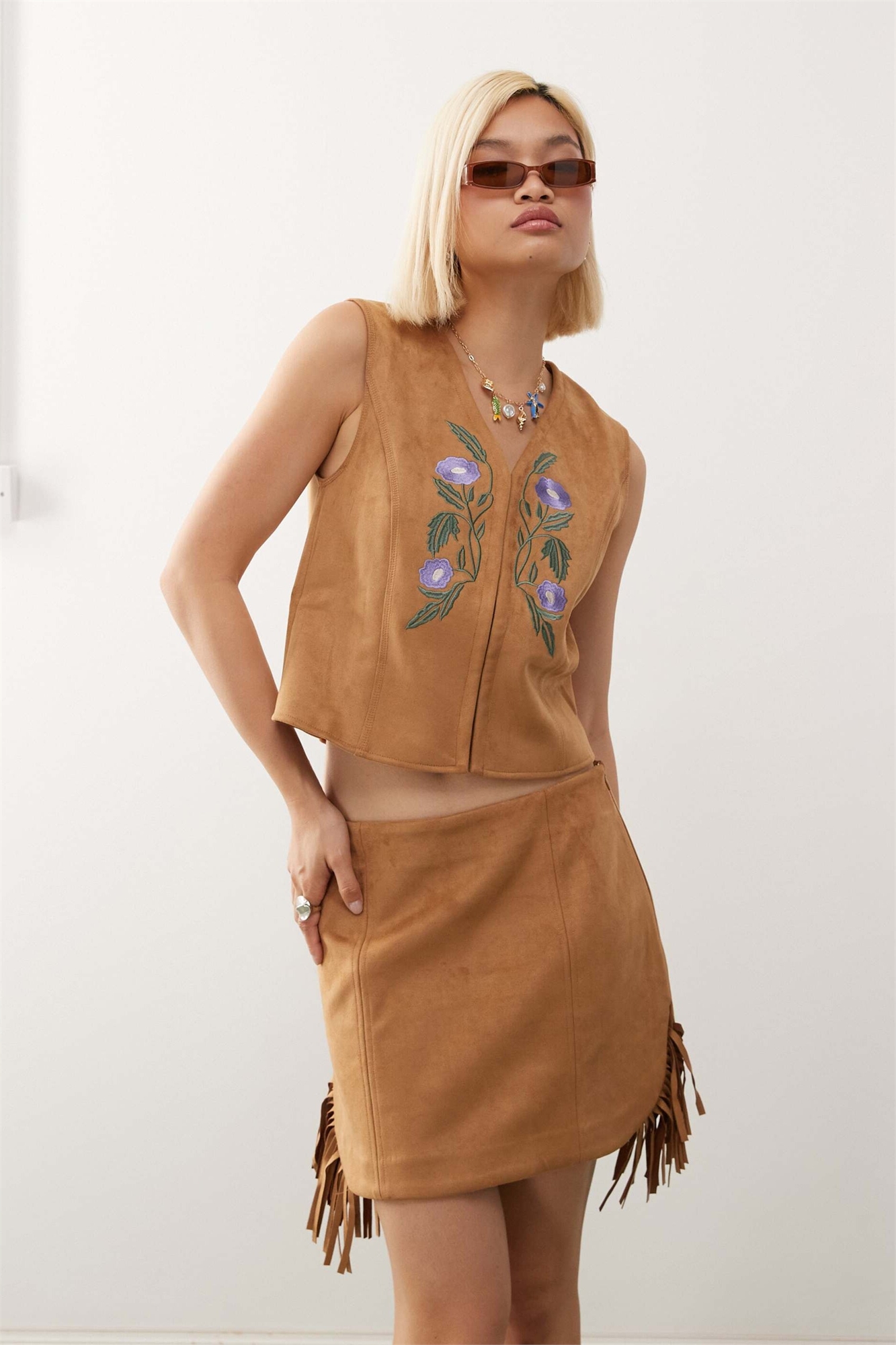 Мини-юбка из искусственной замши с бахромой