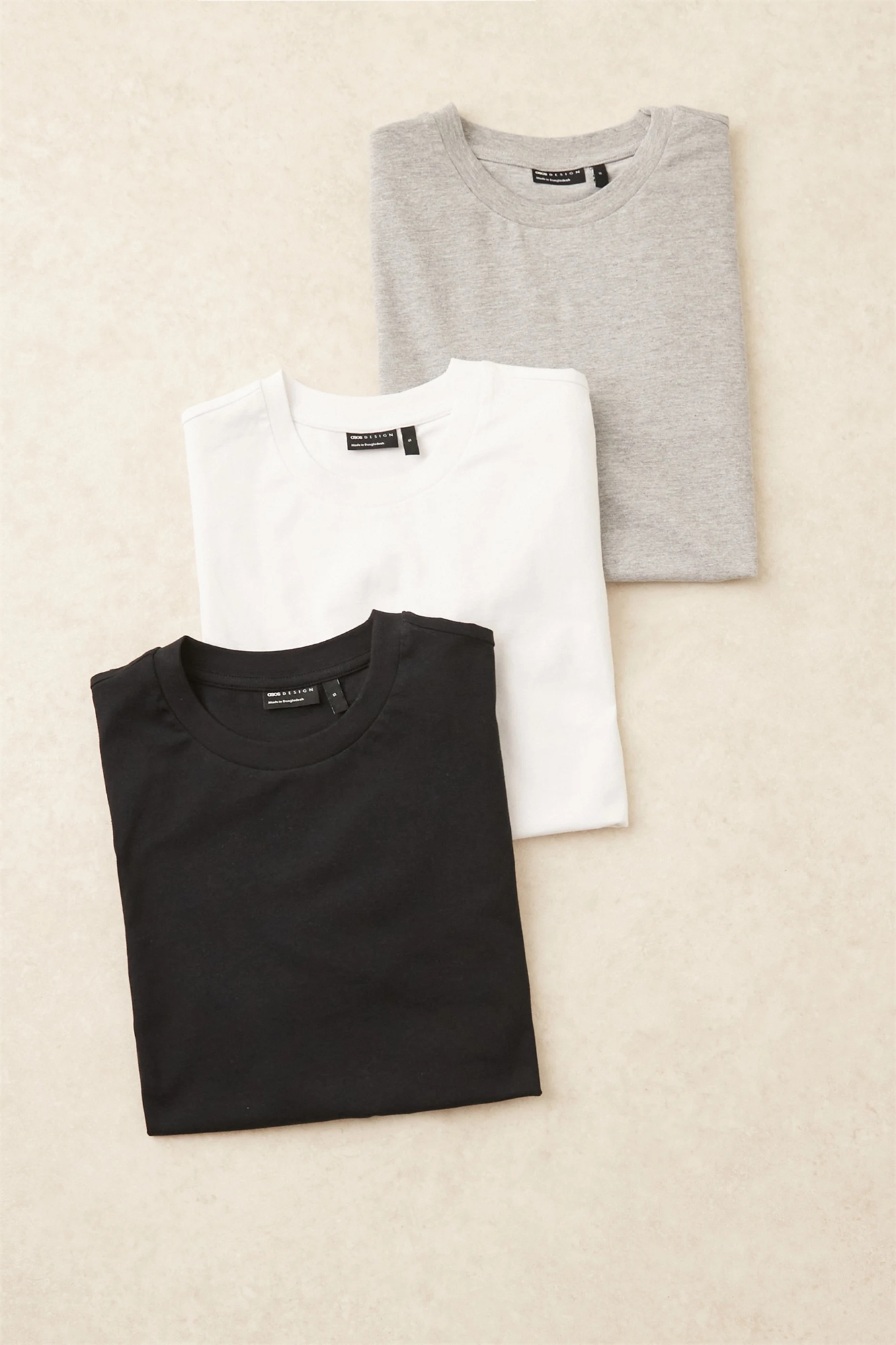 Футболки с круглым вырезом и прямым кроем, набор из 3 штук — черный, белый и серый меланж