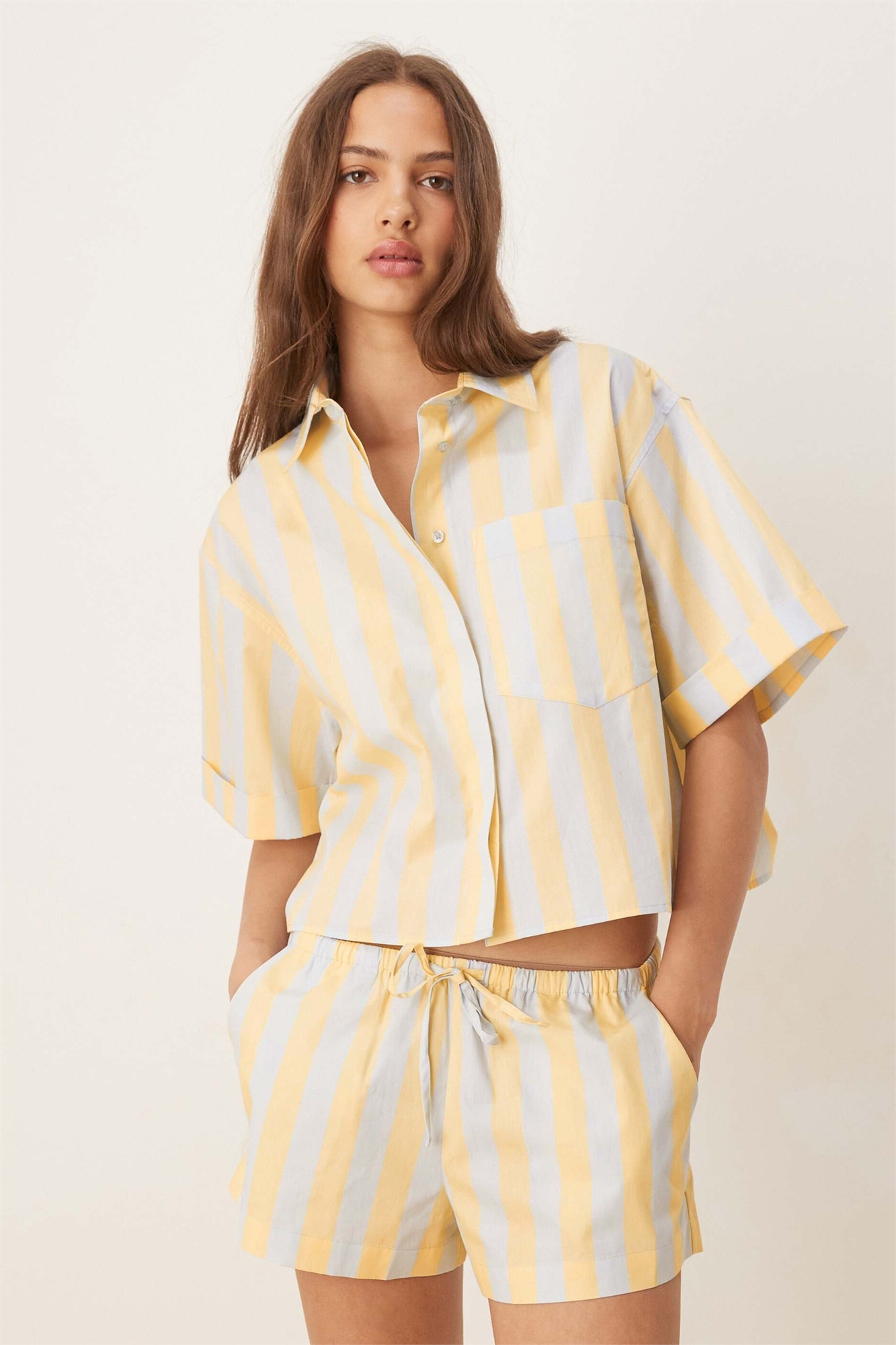 Пижамная рубашка свободного кроя с коротким рукавом и ткаными полосками в стиле «микс-энд-матч»