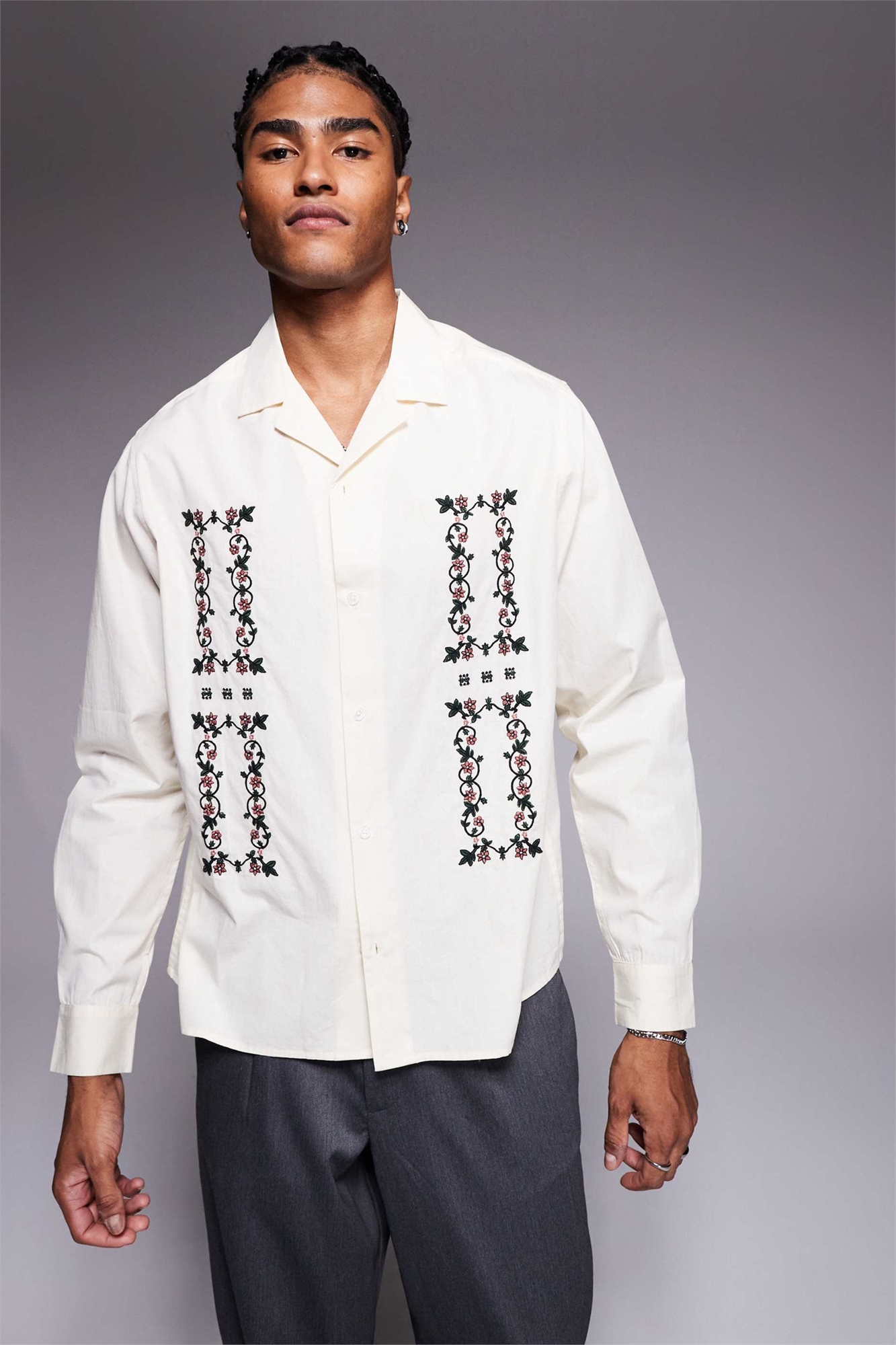 Рубашка прямого кроя с вышивкой
