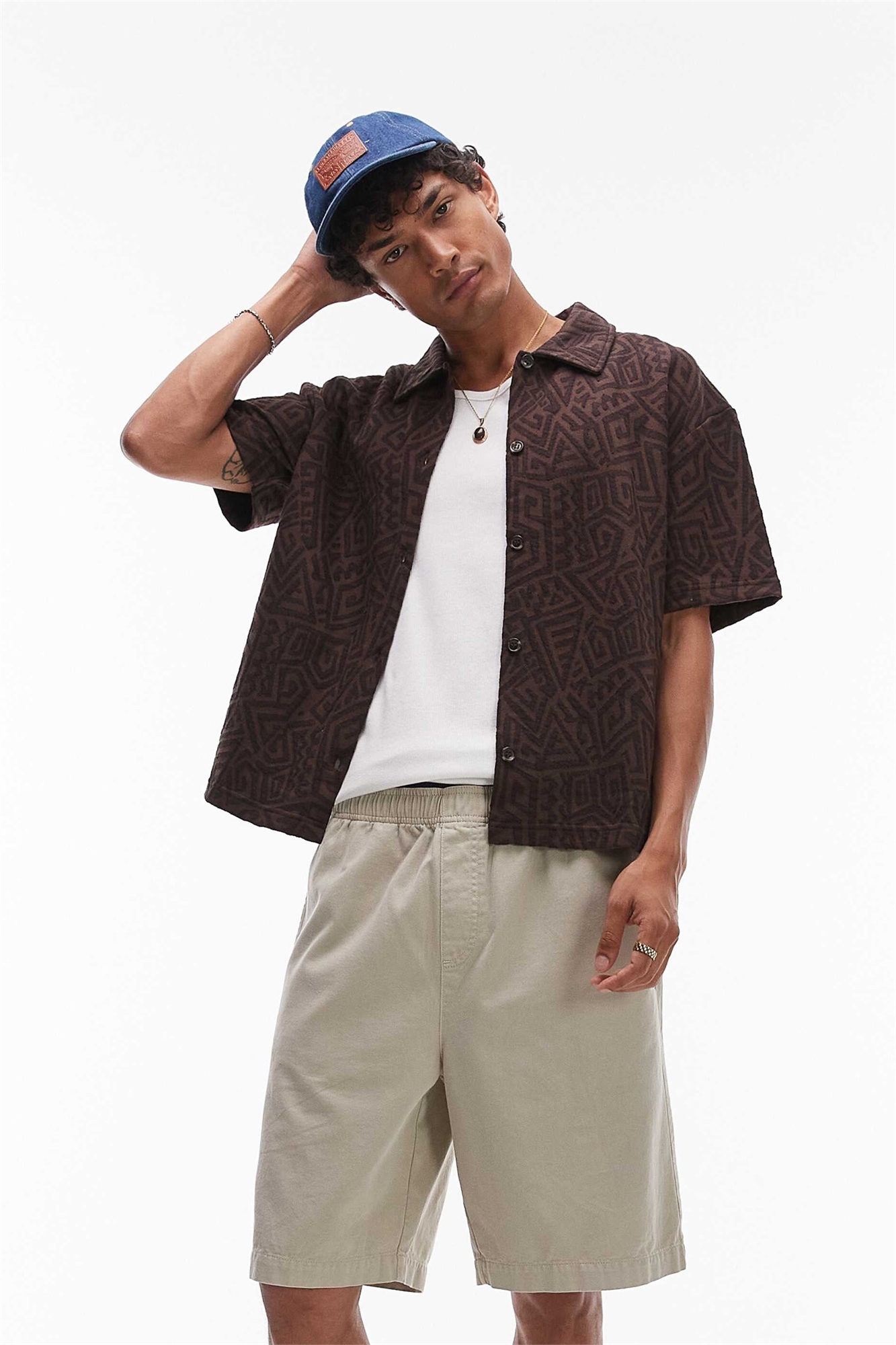 Рубашка из джерси свободного кроя на пуговицах с жаккардовым узором