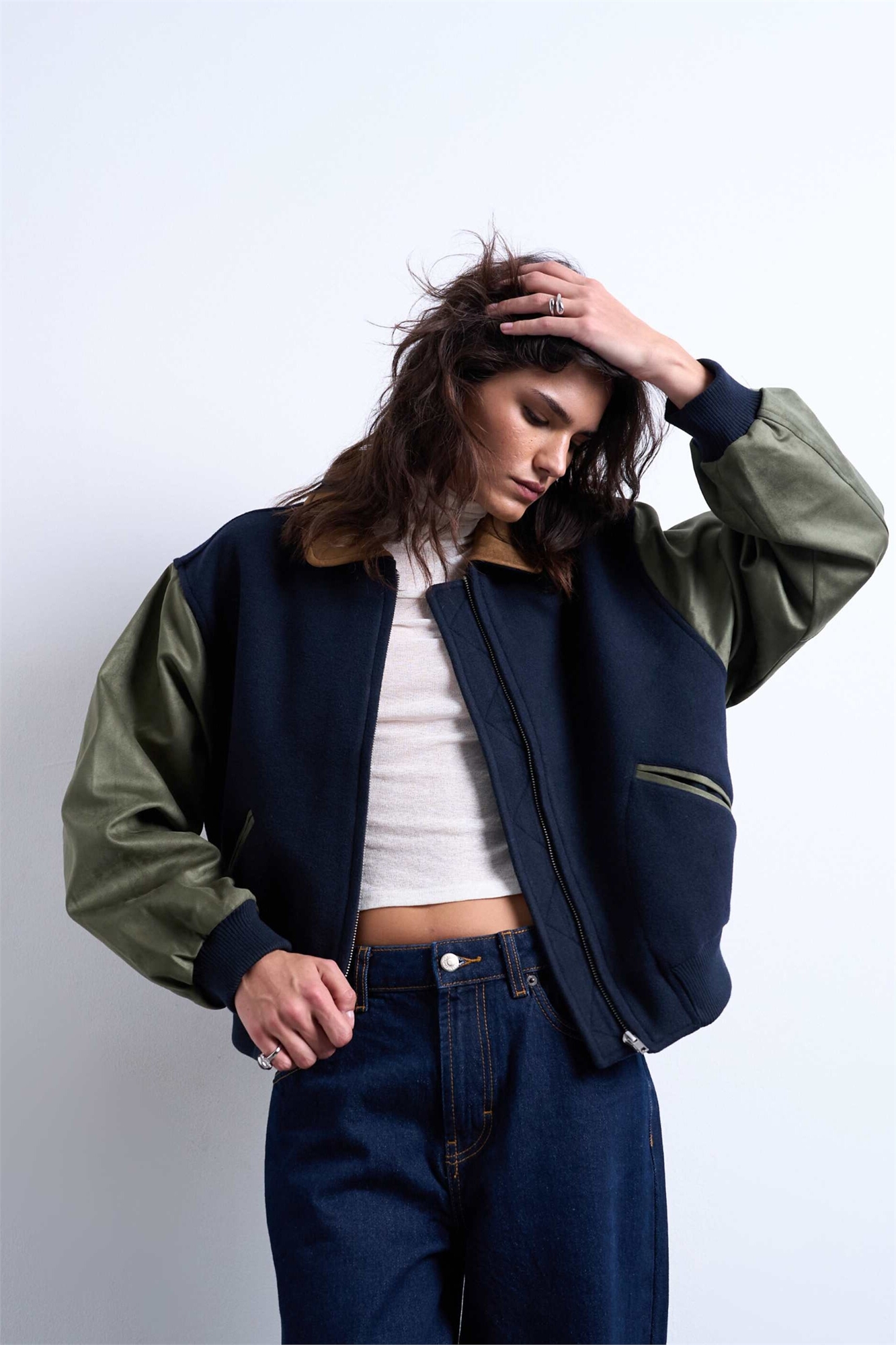 Контрастная замшевая куртка-бомбер в стиле «варсити» в нескольких цветах