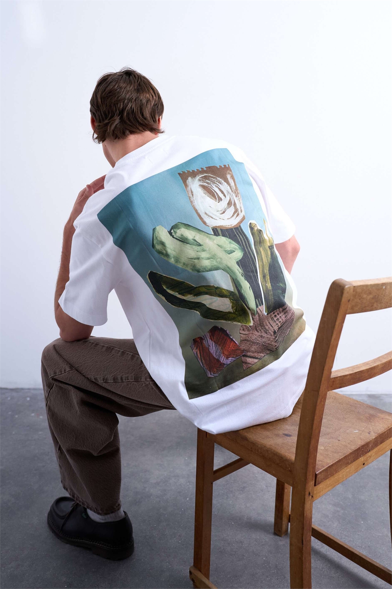 Футболка свободного кроя с цветочным принтом в стиле коллажа спереди и сзади