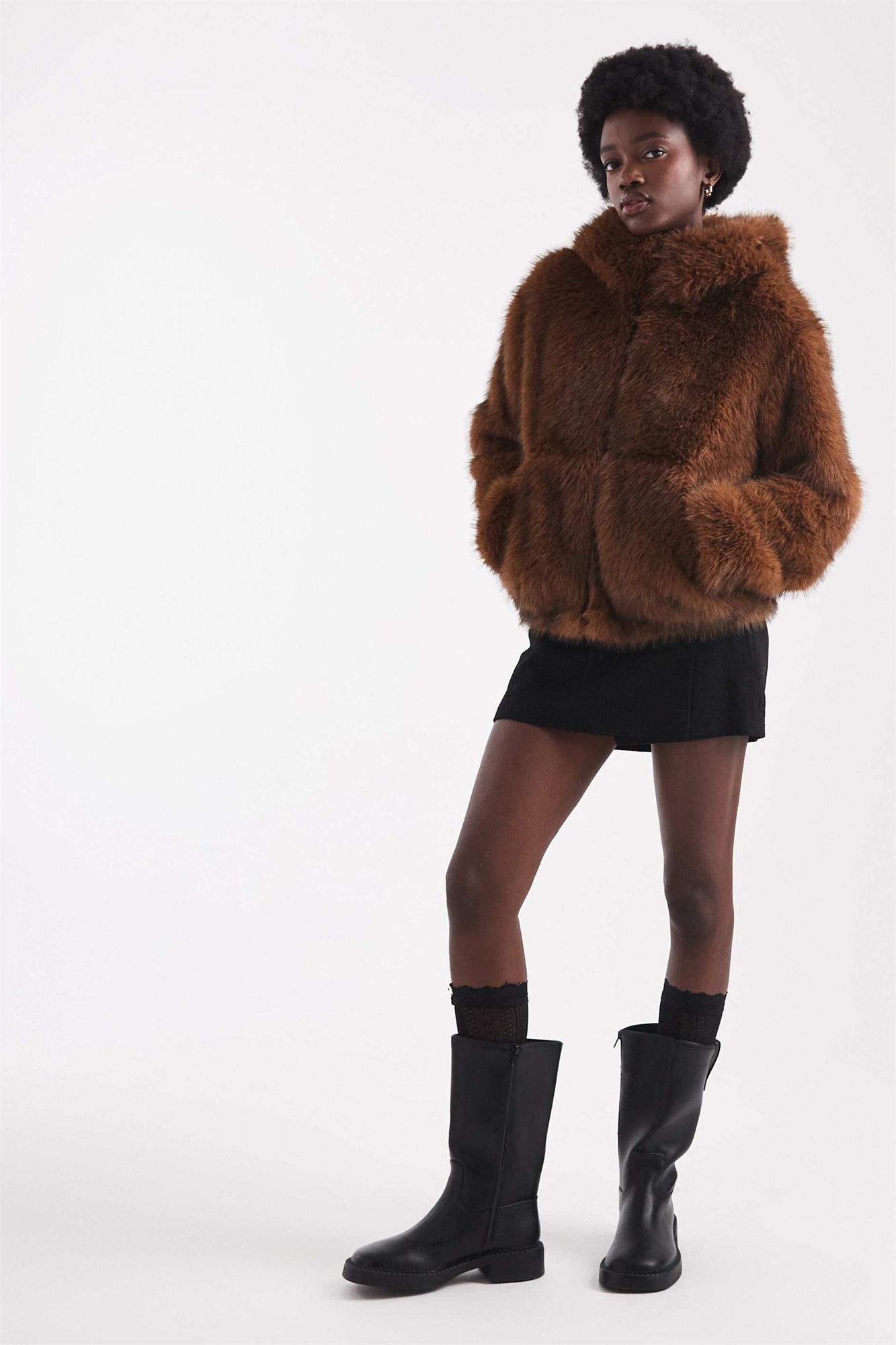 Бомбер с капюшоном из искусственного меха