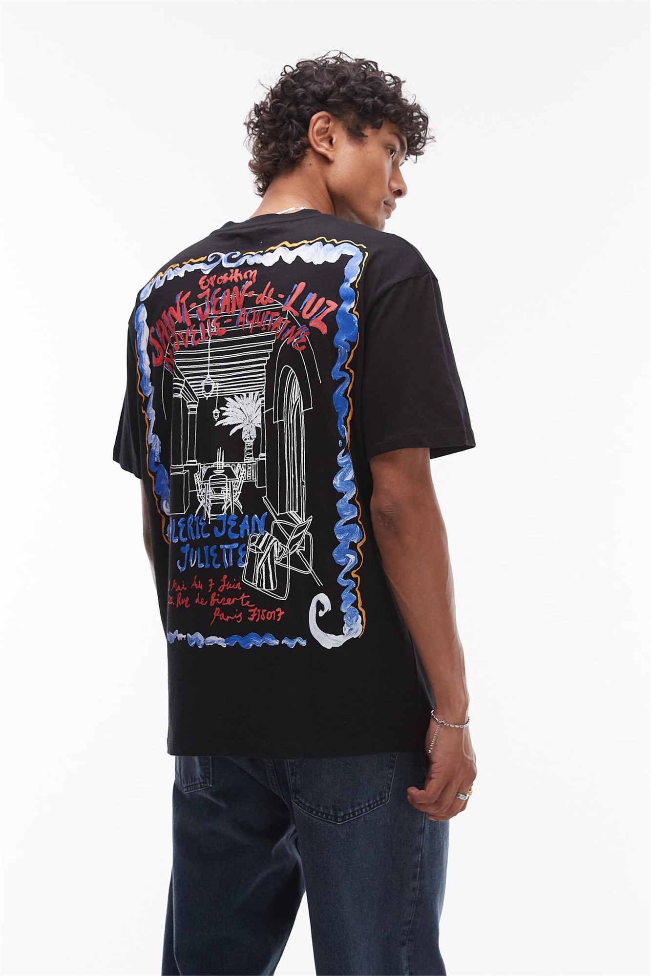 Футболка свободного кроя с изображением французского плаката спереди и сзади