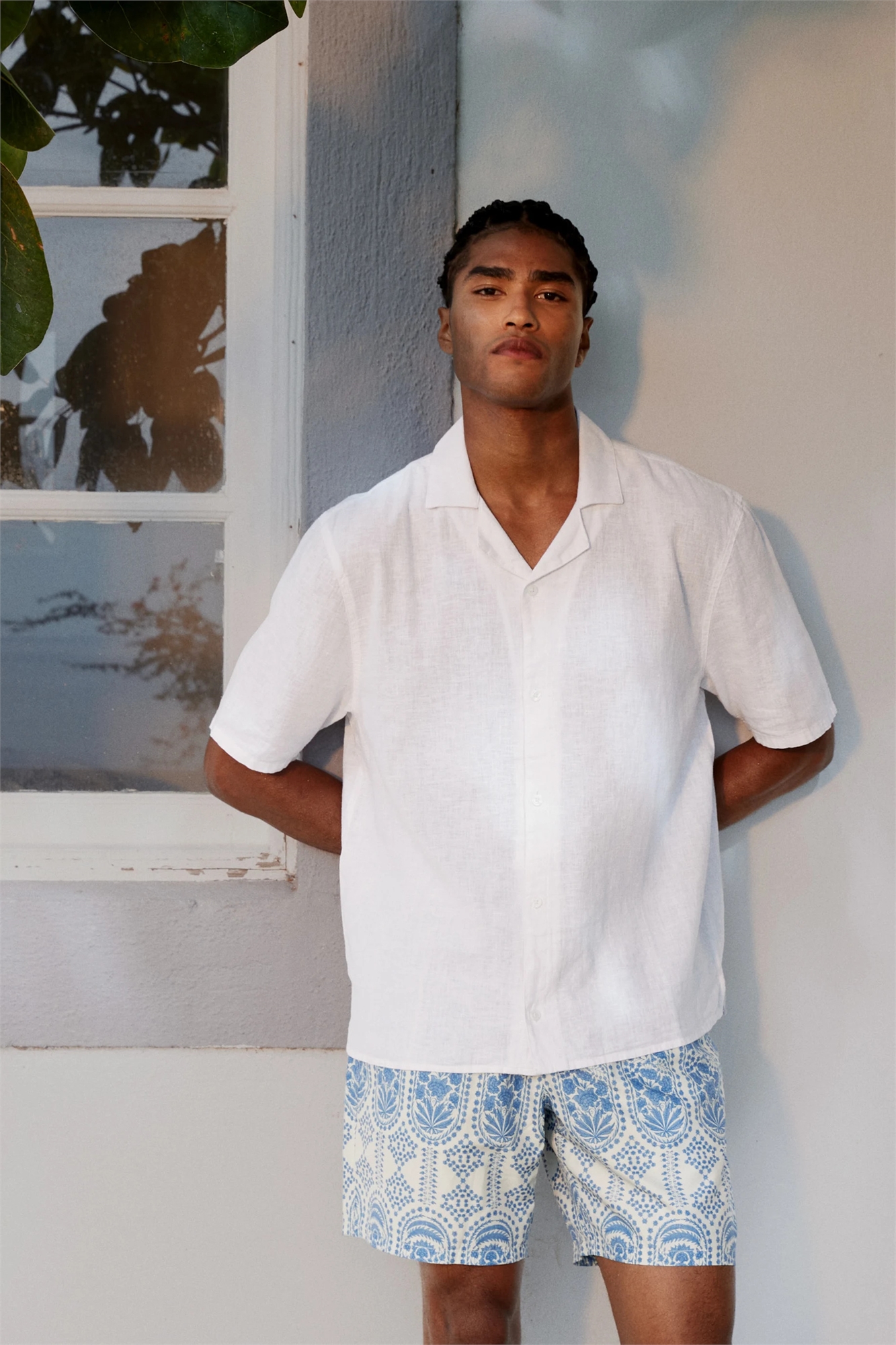 Изготовлено из льна — дышащей ткани с неровной текстурой. Основной состав: 55% лен, 45% хлопок.