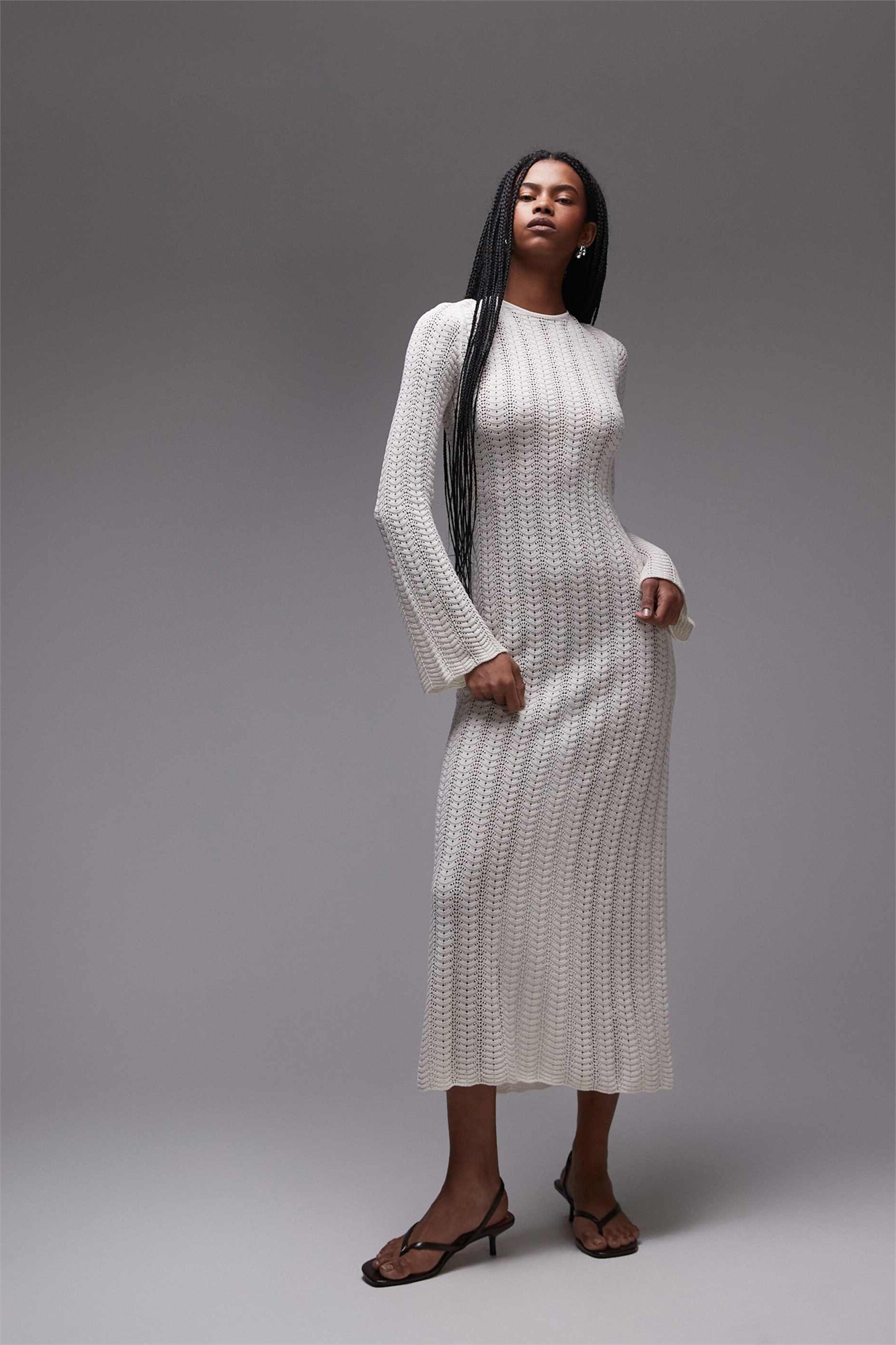 Макси-платье, связанное крючком, с открытой завязкой на спине