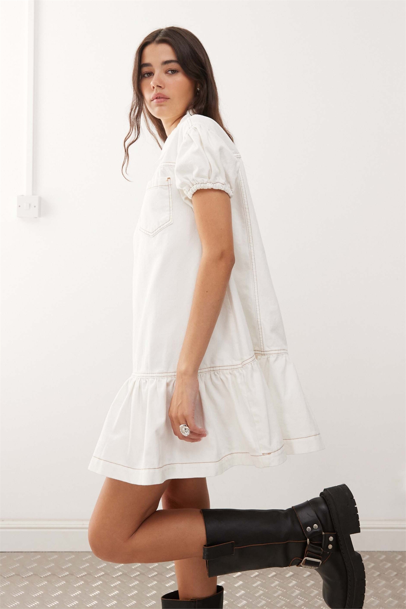 Неэластичный деним: оттенок экрю Основной материал: 100% хлопок.