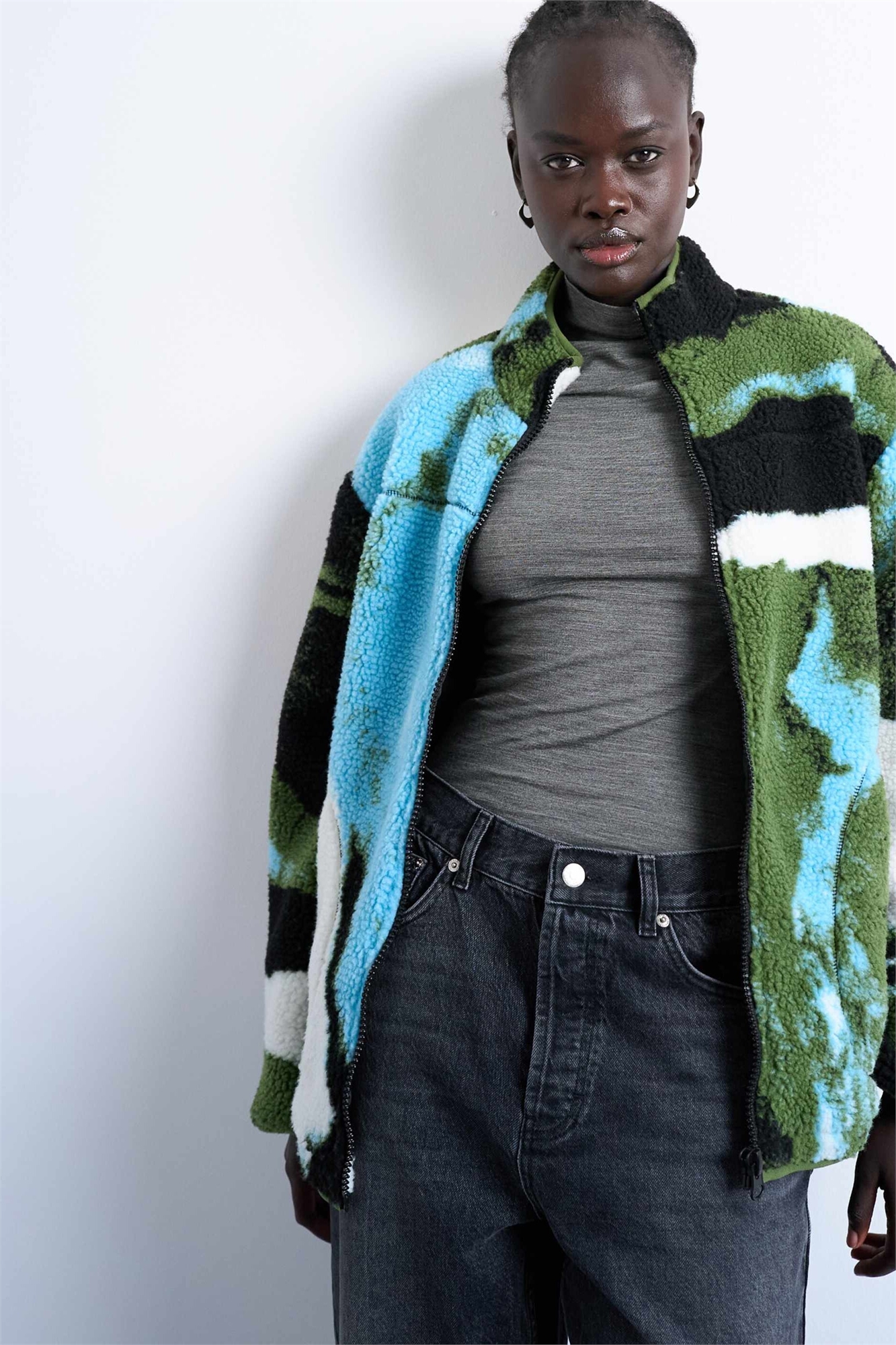 Куртка из флиса «борг» с абстрактным принтом