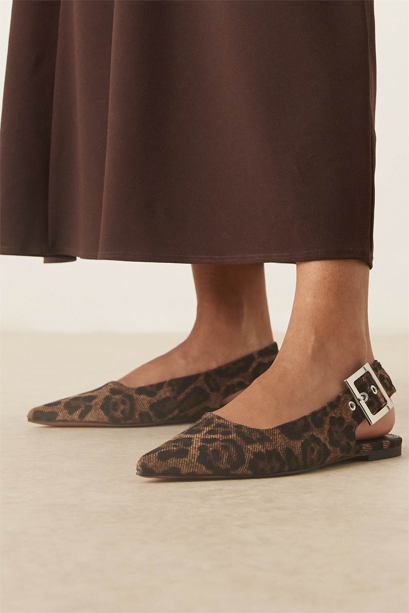 Балетки с широкой колодкой, линейной пряжкой и открытой пяткой