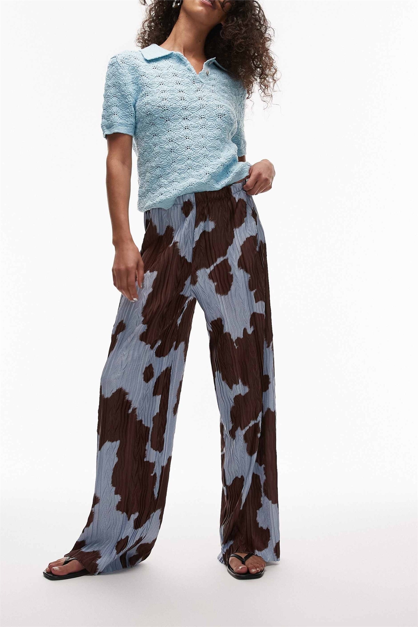 Брюки с плиссировкой под коровью шкуру