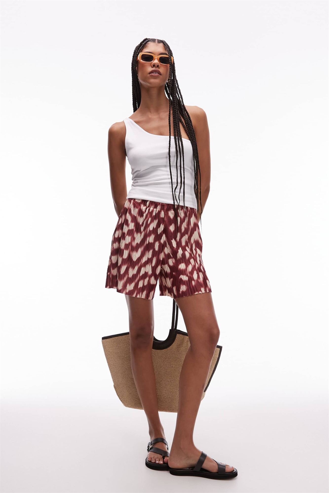 Шорты с широкими брючинами и плиссировкой в абстрактном стиле