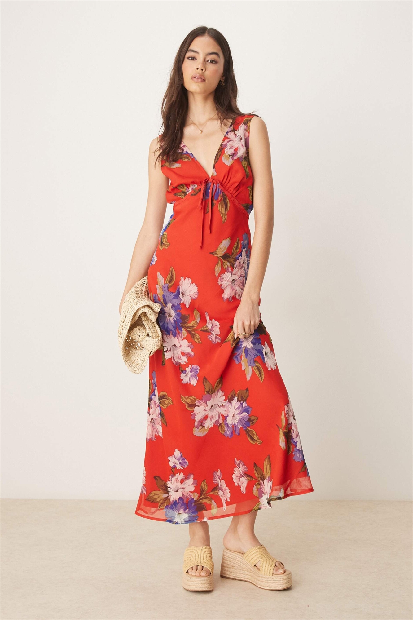 ASOS DESIGN: Платье-миди длинного кроя с V-образным вырезом и завязками на груди