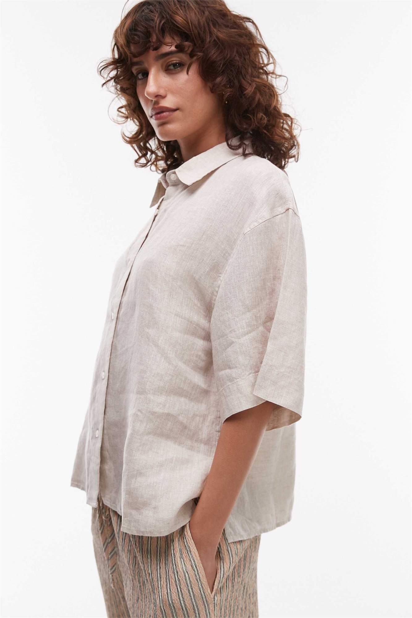 Изготовлено из льна, дышащей ткани с неровной текстурой Основной материал: 100% лен.