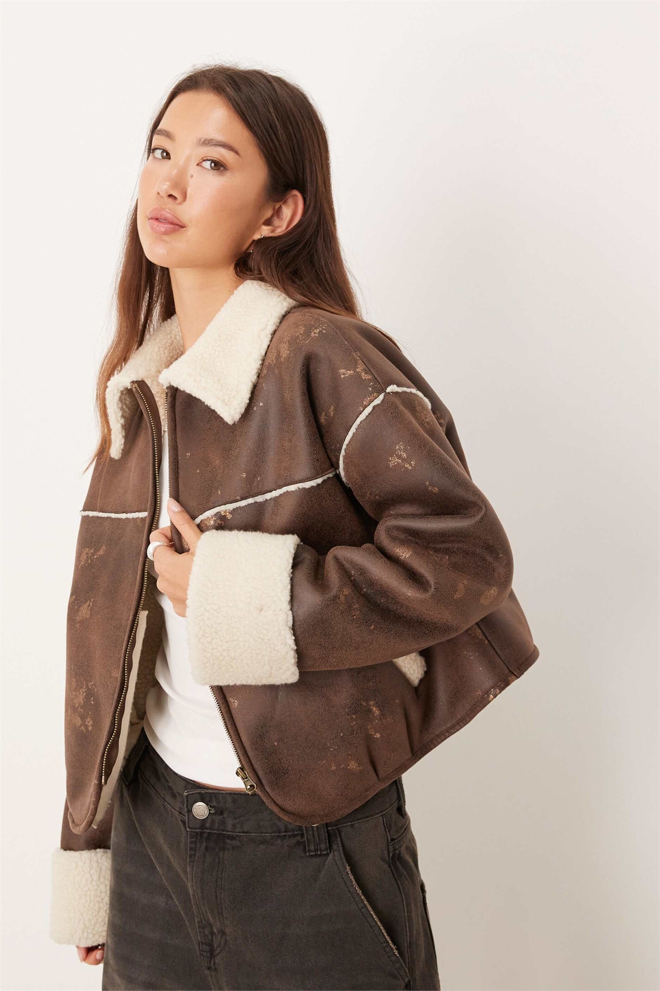 Укороченная куртка из флиса с застежкой-молнией и накладными карманами
