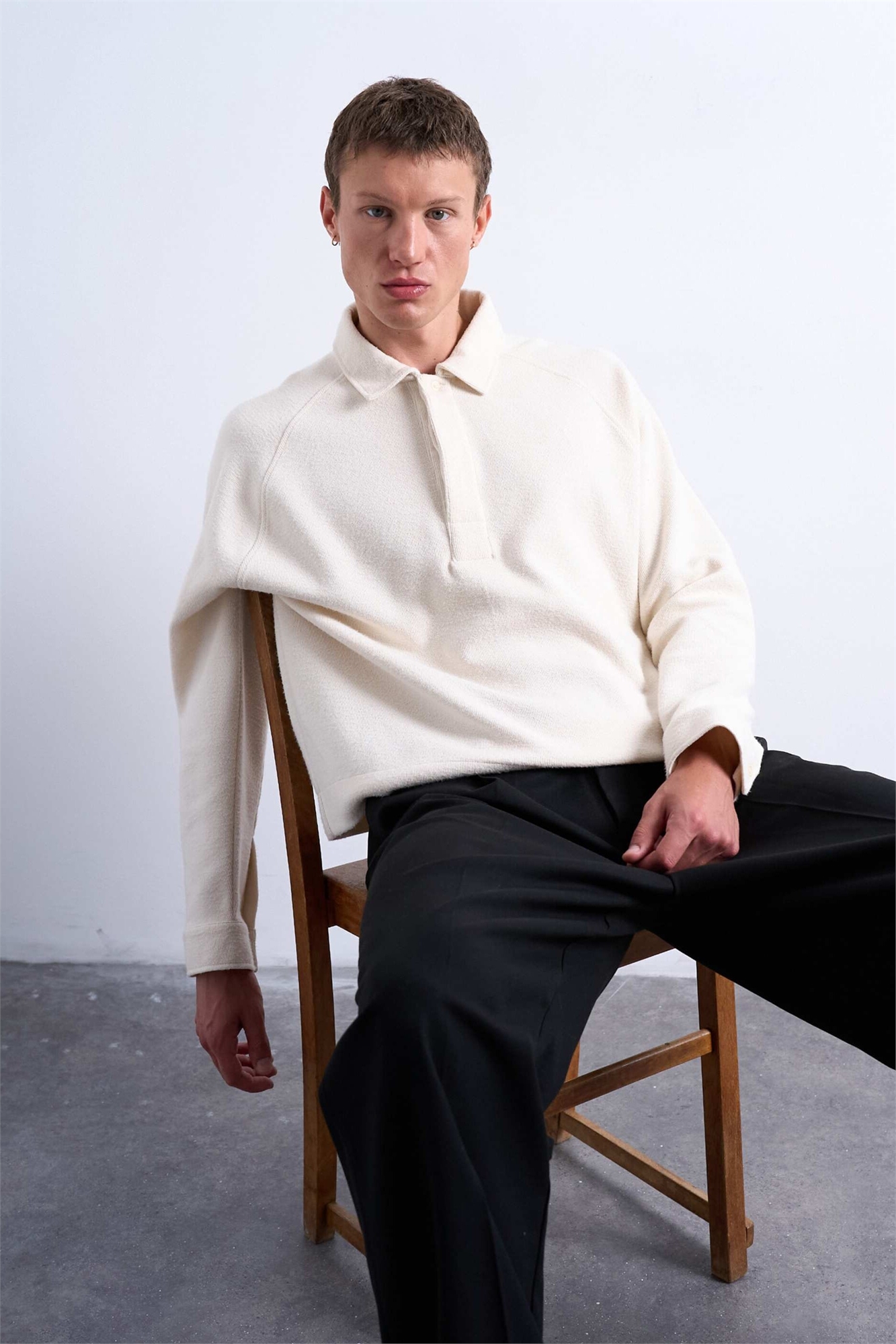 Свитшот-поло с рагланными рукавами, прямого кроя и фактурной текстурой