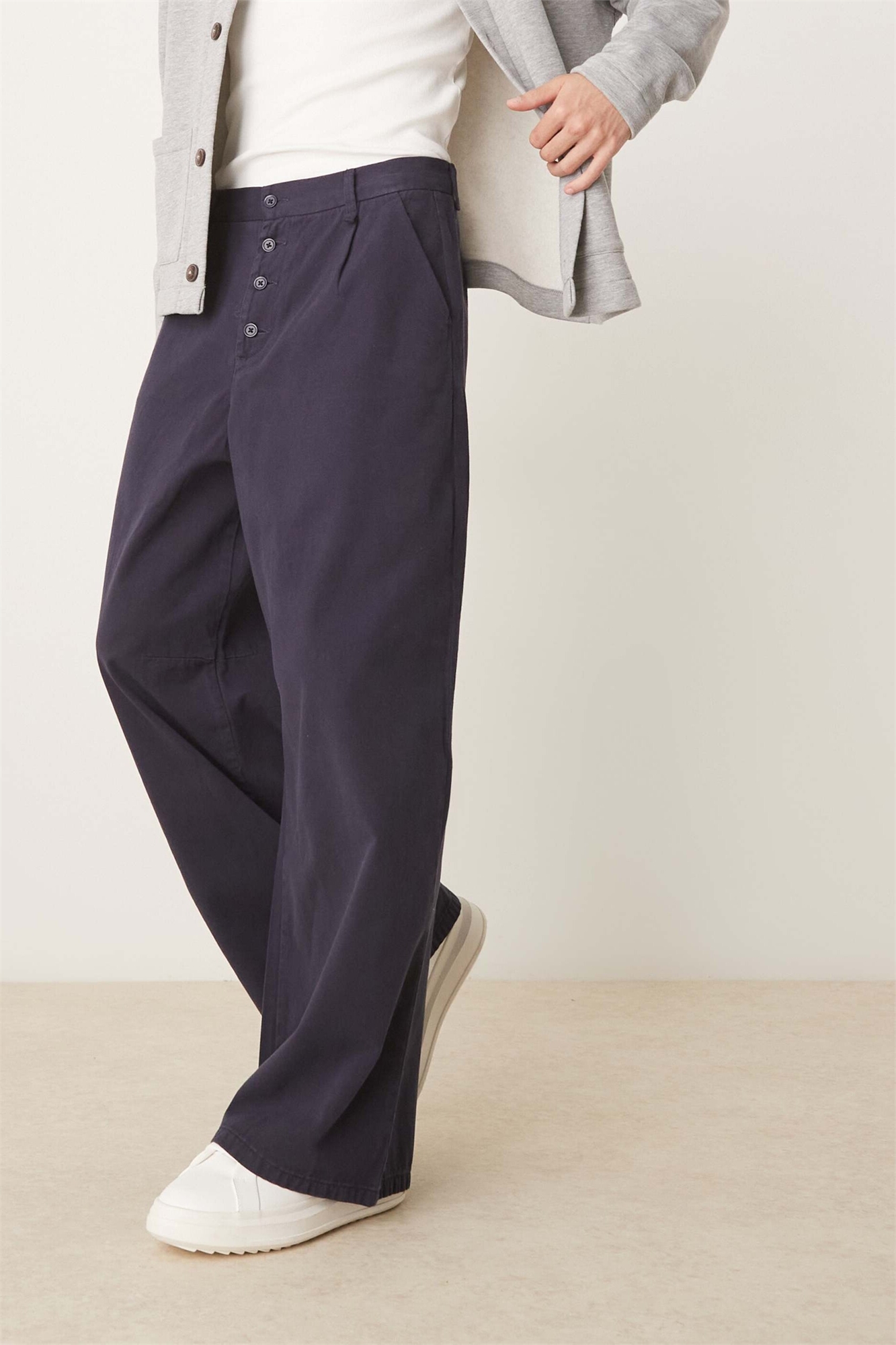 Брюки из твила «подкова» с складкой, темно-синие