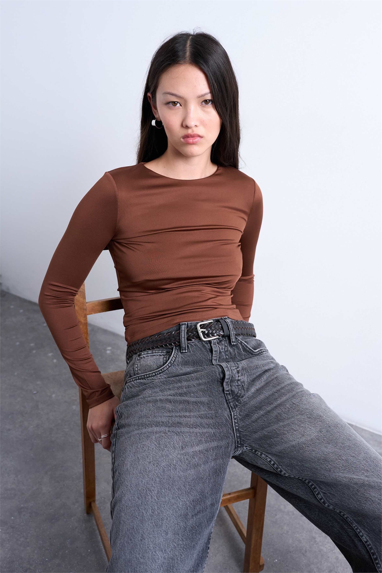 Облегающая кофта с круглым вырезом и длинными рукавами