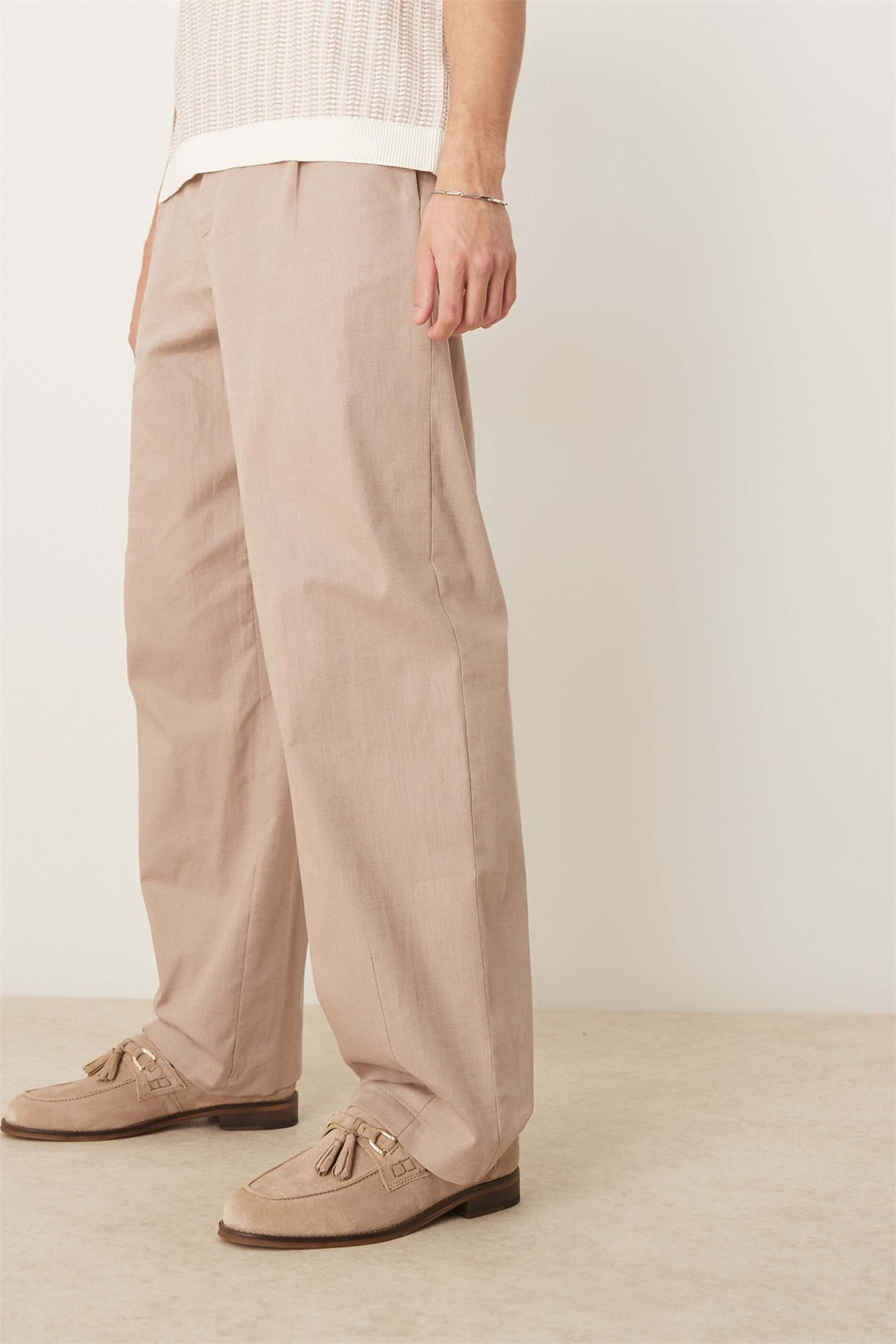 Широкие льняные брюки с вытачками