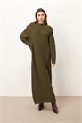 Платье средней длины с плечевыми вставками из ребристого трикотажа