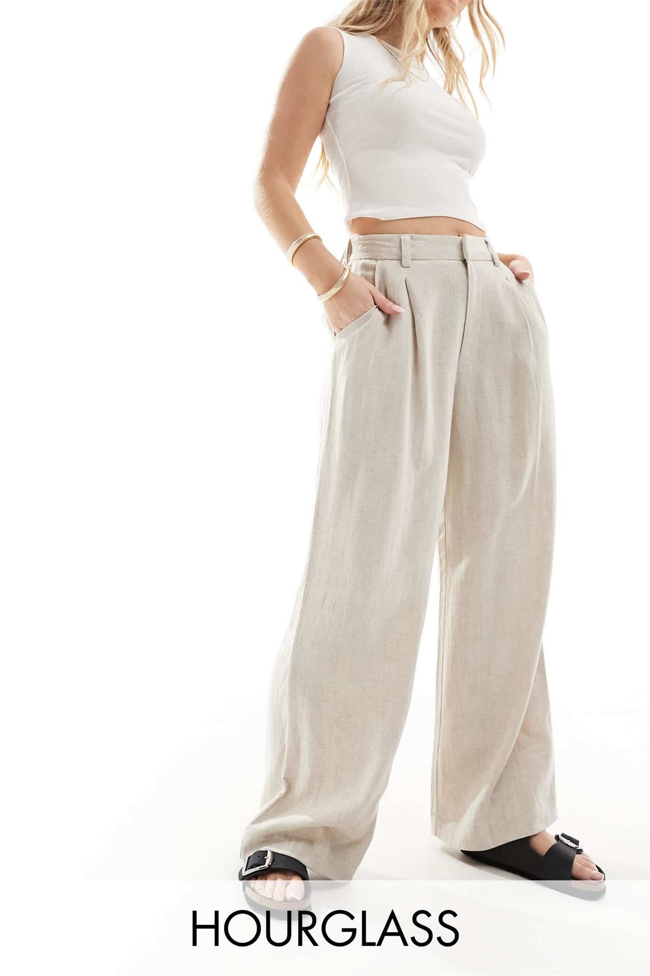 Брюки с прямыми брючинами и льняной вставкой от Hourglass