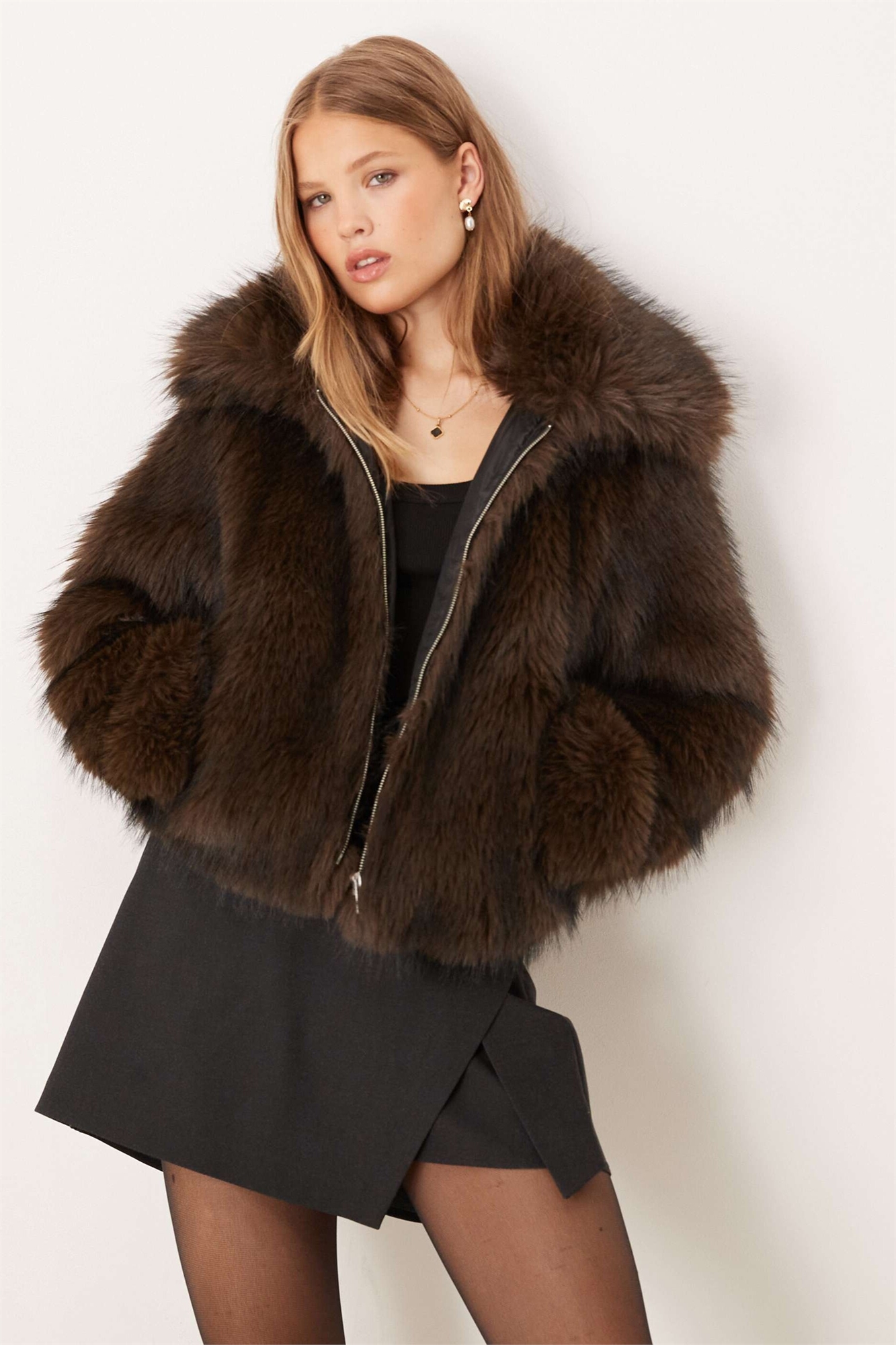 Короткая меховая куртка с воротником