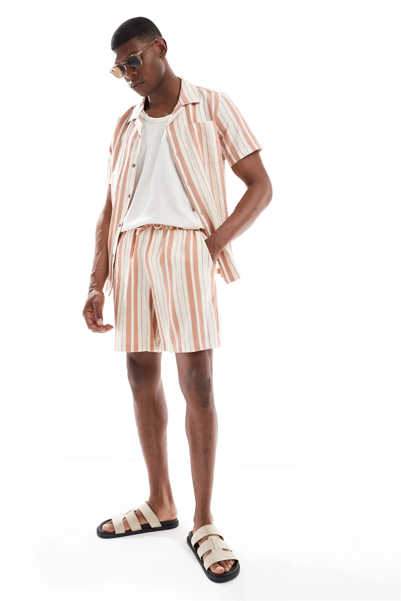 Шорты в полоску под льняную ткань co-ord