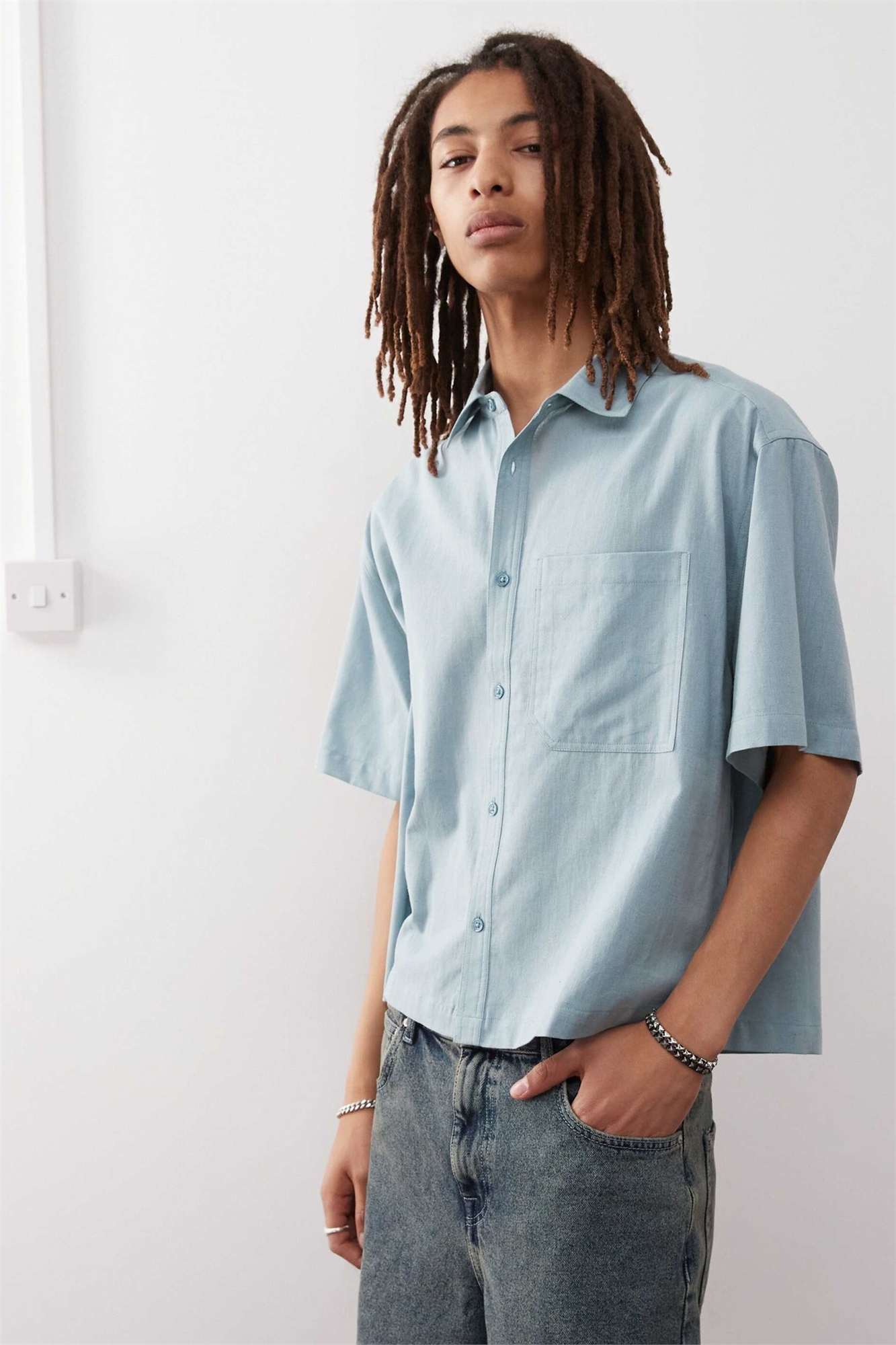 Рубашка с короткими рукавами в стиле «бокси» из льна