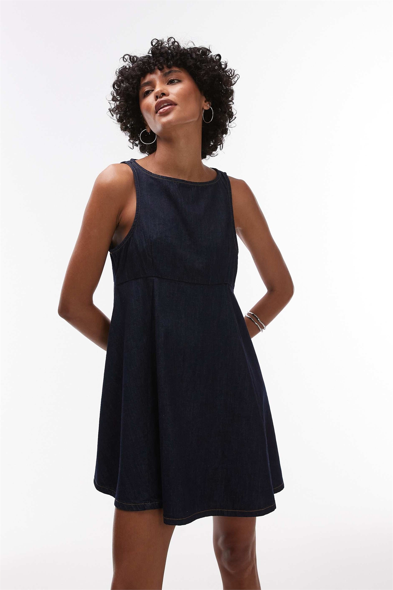 Мини-платье из денима с V-образным вырезом и откидной частью